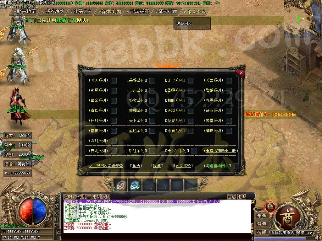 赞助充值后,快速合成各种特殊,不管是打怪还是杀人都稳稳的!(优先升级切割特殊)