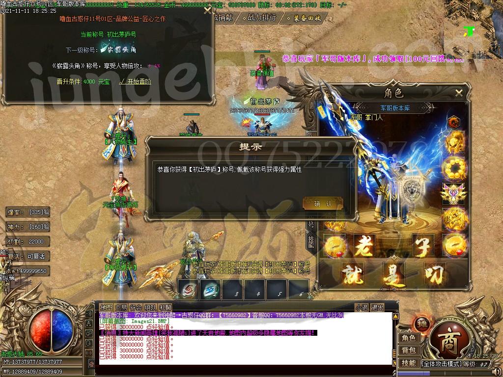 直接送50W元宝去弄称号和等级、快速的让自己下大陆!!!