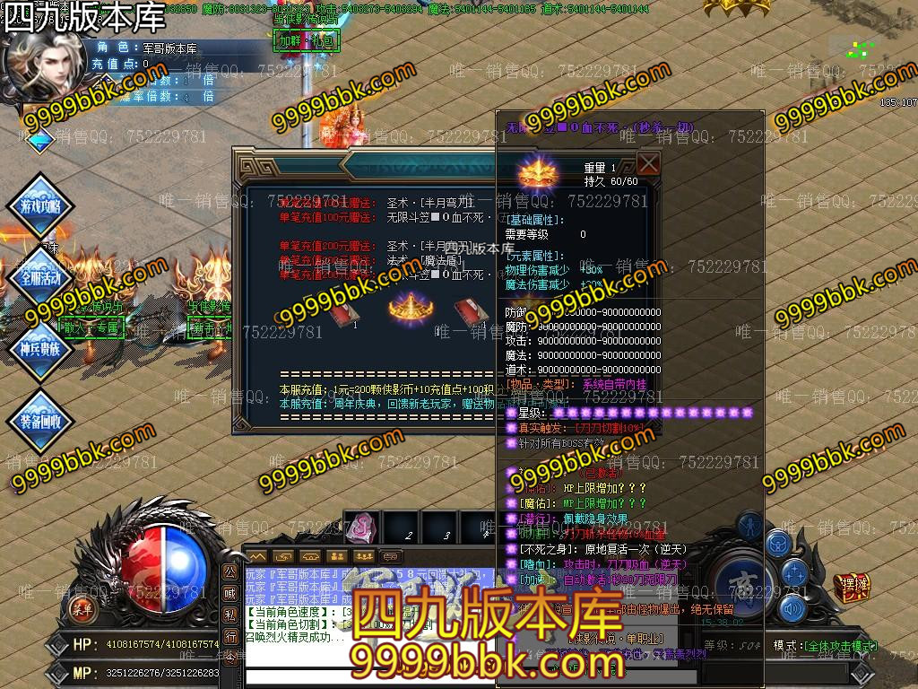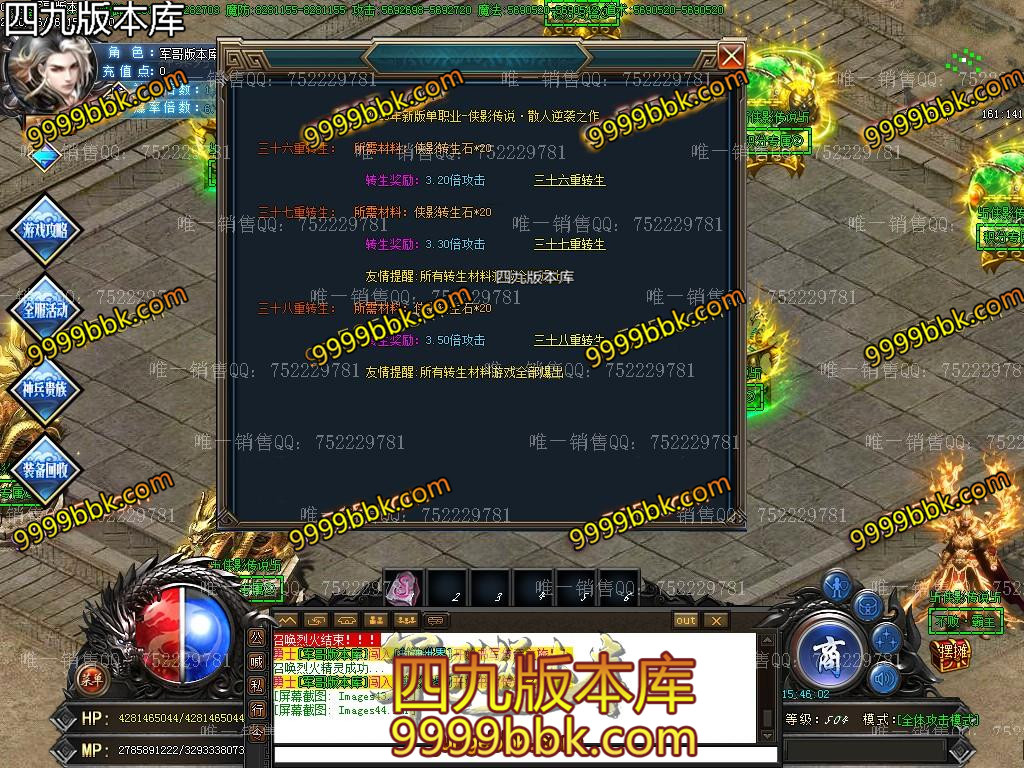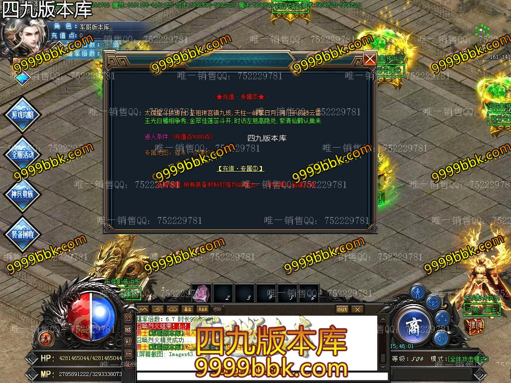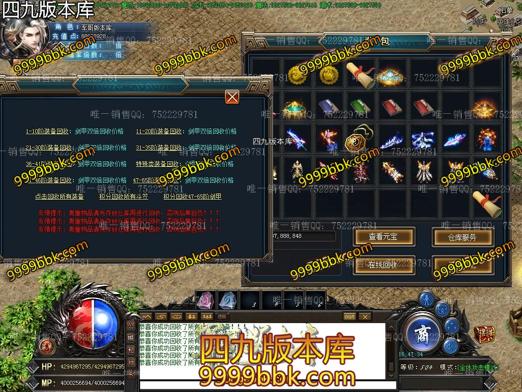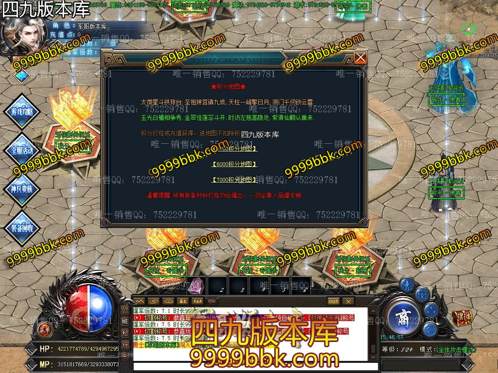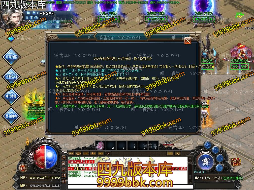 <2020年新版单职业-侠影传说·散人逆袭之作/ <★重点:怪物等级越高爆的东西越好,回收终极剑甲,装备全爆绝无保留!宗旨散人一样打BOSS,时间+运气=终极★/ <★1:新手上线,第一步记得加群,群礼包有初级切割和必备技能。 <★2:称号卷,转生材料是怪就爆,散人很快就能上手。/ <★3:然后土城下方几个散人地图,满屏boss,所有怪全爆元宝,侠影币,积分,装备回收等等/ <不爆装备的请先看看自身爆率。 <★4:元宝升级切割称号,无名火升级倍攻转身,随处可爆非常好打! <也可打元宝。/SCOLOR=251>\ <★5:积分领取满回馈,积分满地爆,回馈物品高级称号转生材料和切割! <★6:幸运签到,700级后选择签到(土城泡到500级一秒一级),有机会获得幸运名额,奖励200元充值,你还在等什么呢? <散人可打积分领取回馈礼包,进入超级回馈地图,绝对逆袭。/ <★7:限时奖励,本服限时装备几百件,第一个捡到的玩家,系统自动奖励充值次充值为真实充值包括充值点积分元宝/ ============================================================