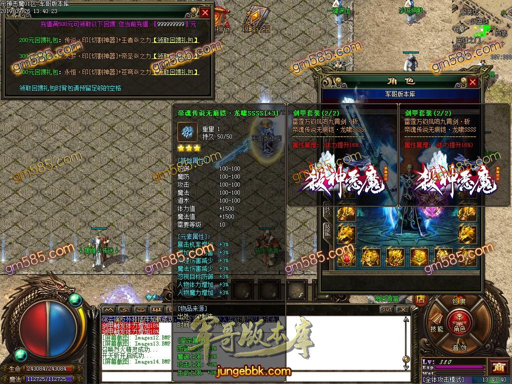 【充值】:充值奖励 1:1 恶魔币:1:1000 元宝1:10000 无比例无待遇