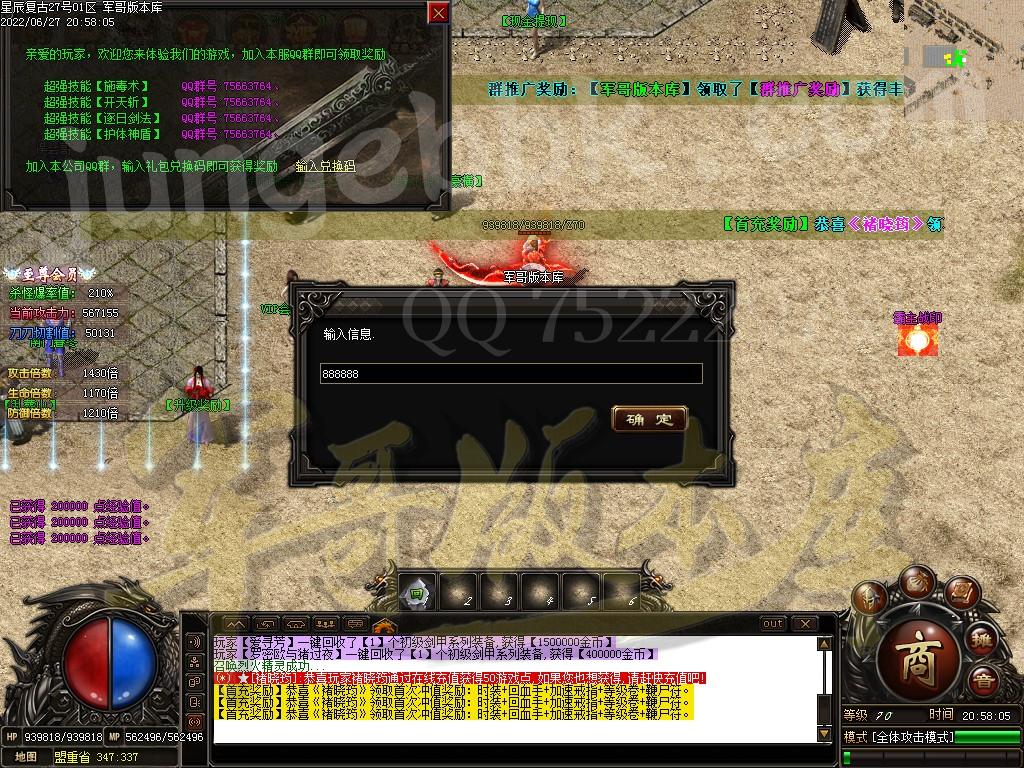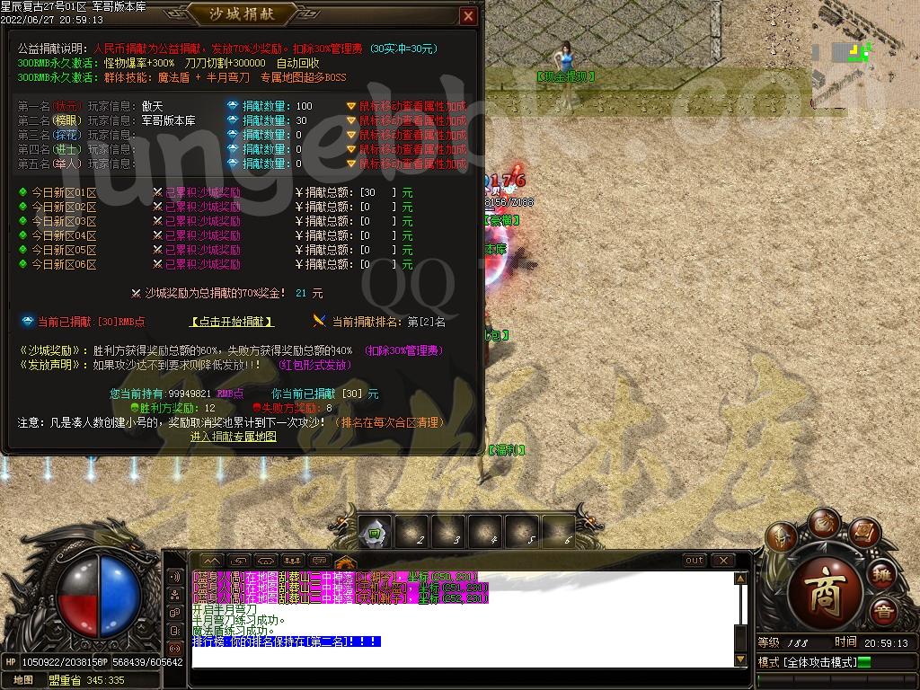 金币充值比例 1 :10   版本为正常开区端有问题联系QQ 616102345  处理