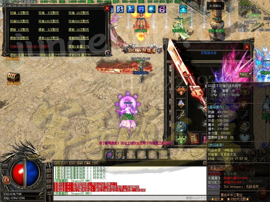 5.专属装备是本服的核心,每一件属性都极强,前期建议首打武器专属怪,具体打什么怪盟重土城看专属装备介绍NPC