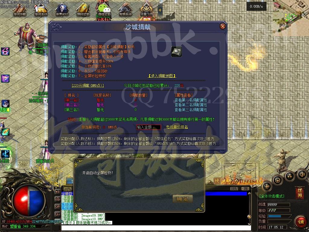 金币充值比例 1 :10   版本为正常开区端有问题联系QQ 616102345  处理