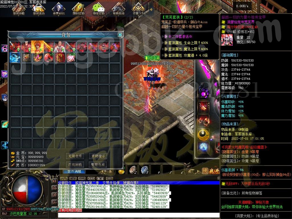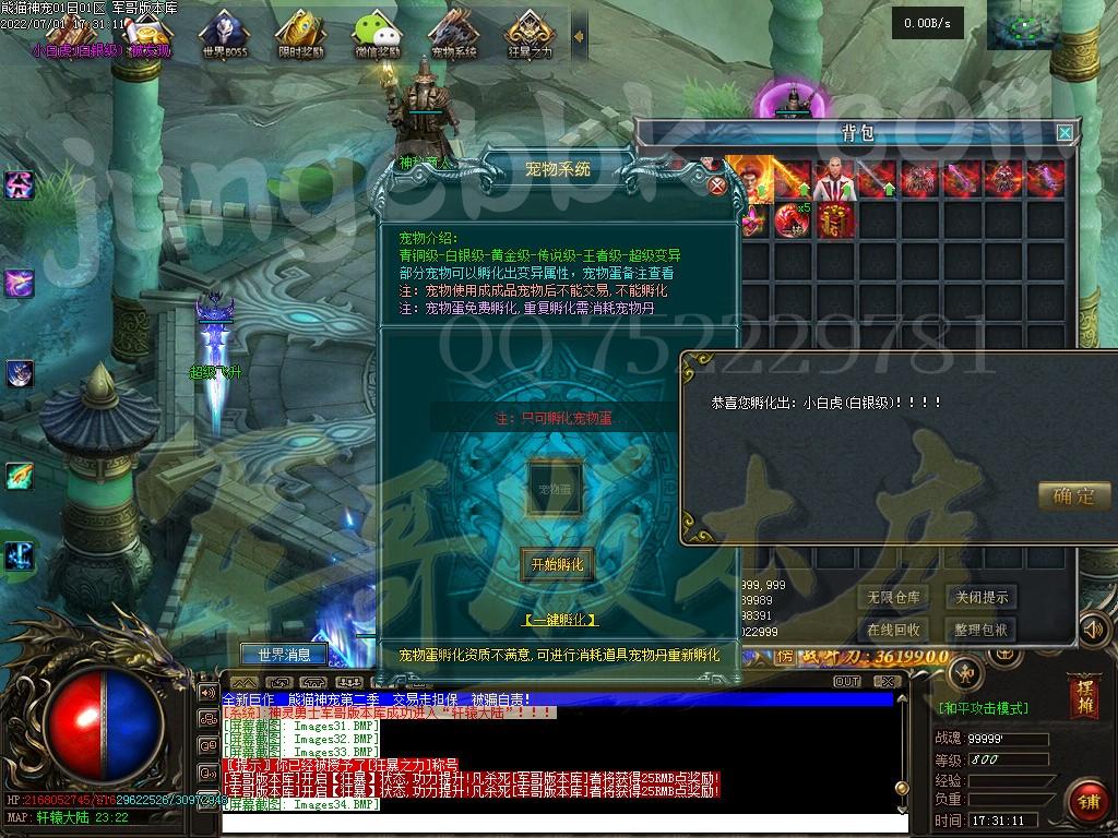 6.时装.宠物.麻痹.等级丹.倍攻首饰.总之所有全靠打了.