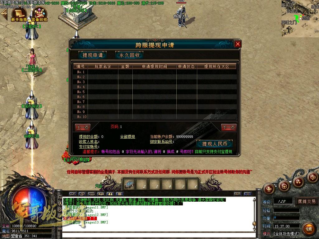 金币充值比例 1 :10   版本为正常开区端有问题联系QQ 616102345  处理