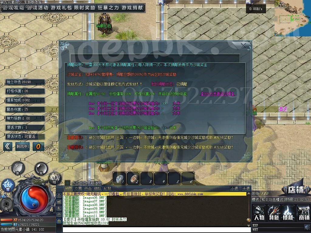 捐献说明:只需3O0即可激活捐献属性,每人限捐一次,本次捐献所有作为沙城奖金