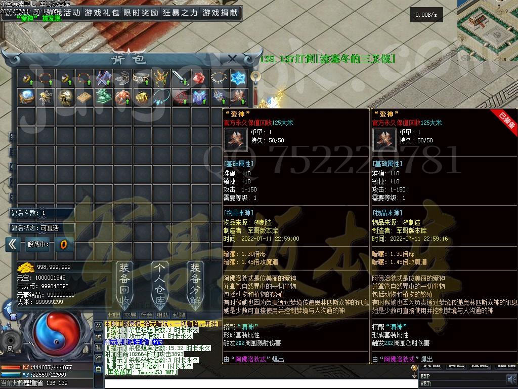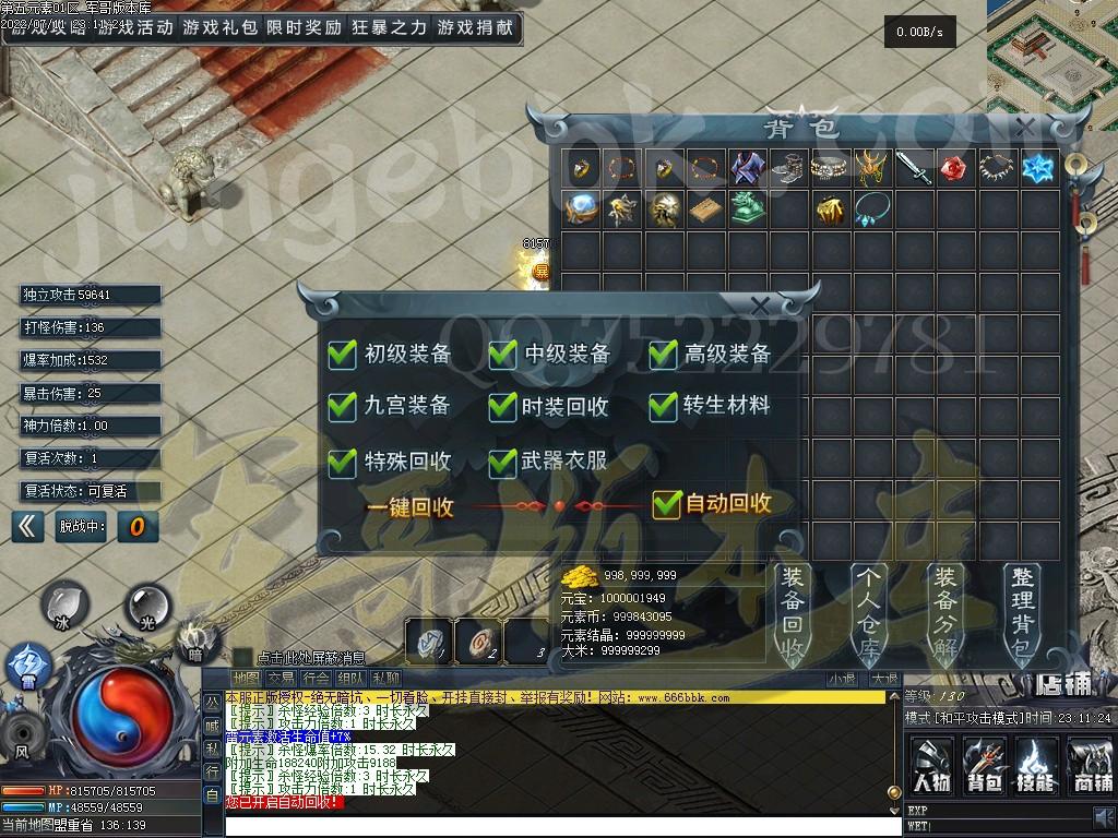 捐献属性:全属性50-50杀怪爆率1008打怪伤害208开启自动回收功能