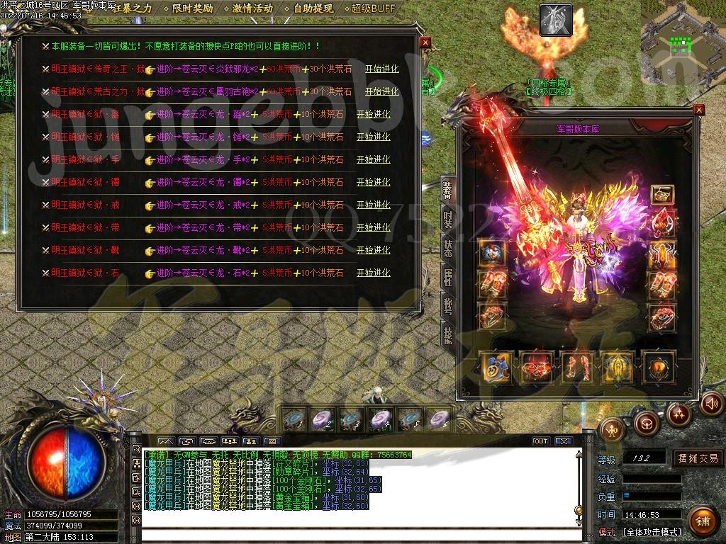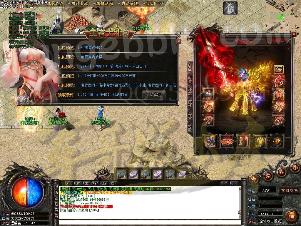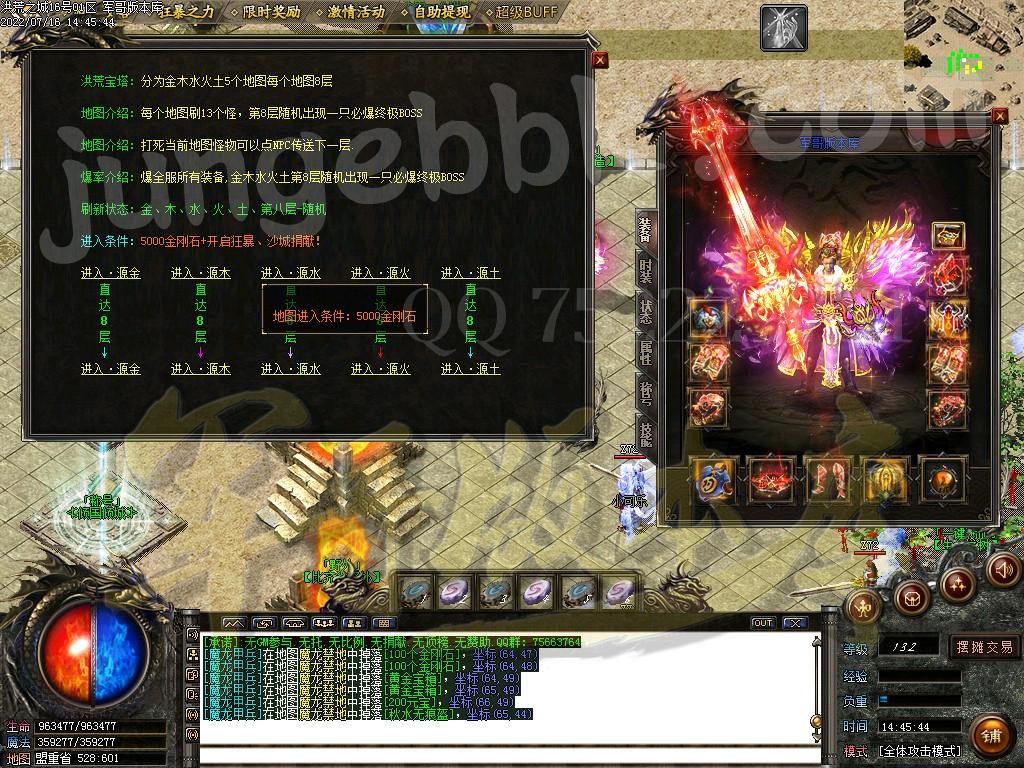 重要提示:小怪一样爆终极,只是时间问题,打到就是转到。火凤凰,洪荒宝塔,BOSS战场。爆率相对大一点,但是怪物也难打一点。只要你花时间,一切都有。 ============================================================