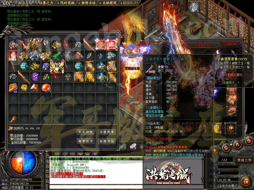 【游戏简介】:|「1元」充值=10000元宝+1洪荒币,小怪可爆终极神装!!
