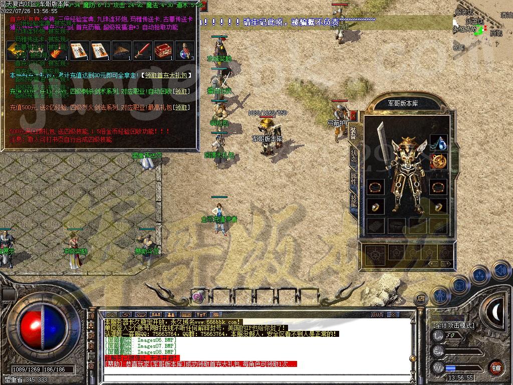 金币充值比例 1 :10   版本为正常开区端有问题联系QQ 616102345  处理