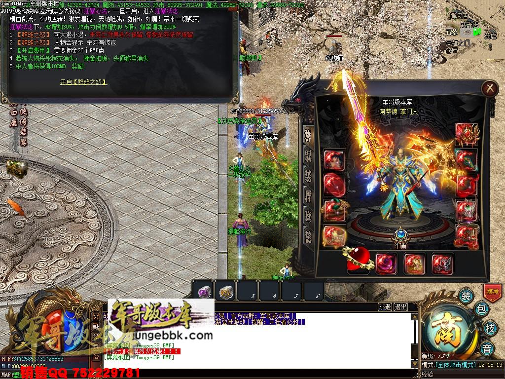 金币充值比例 1 :10   版本为正常开区端有问题联系QQ 616102345  处理