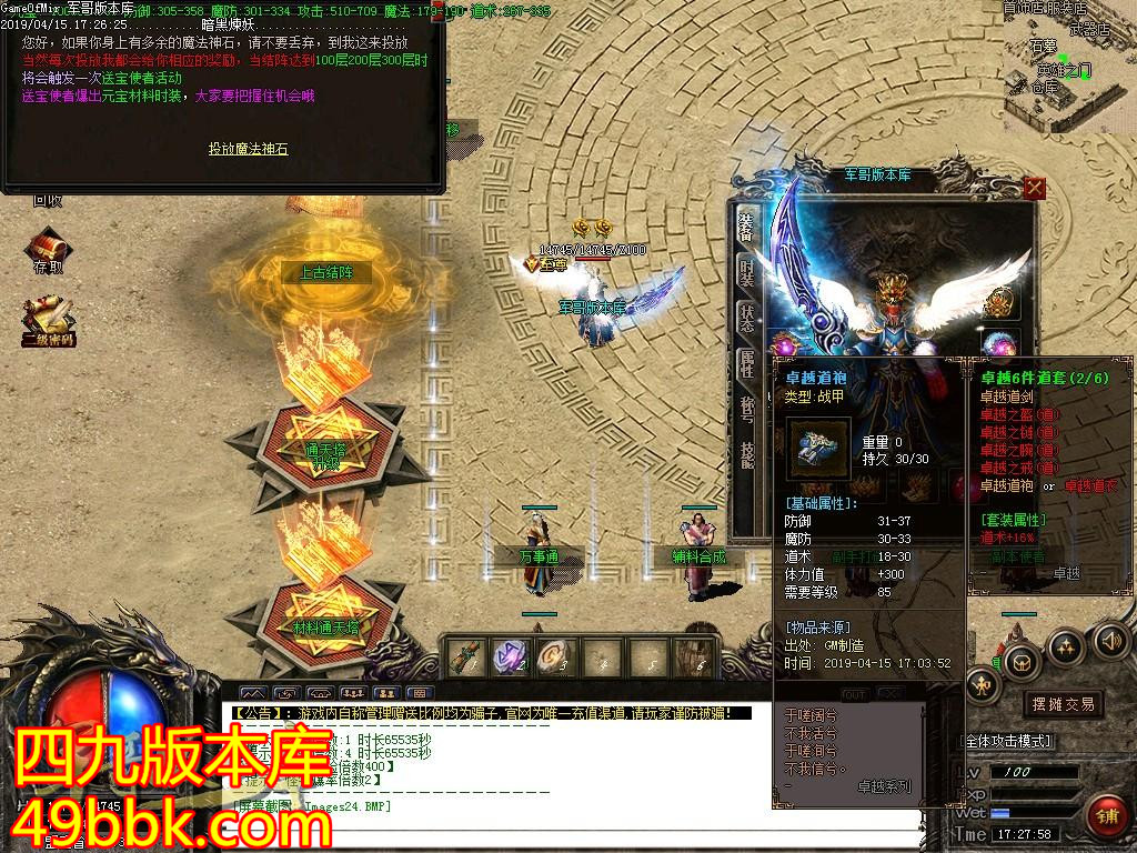 介绍天神下凡:三职业通用。根据职业不同。增加不同的HP。增加攻击 魔法 道术