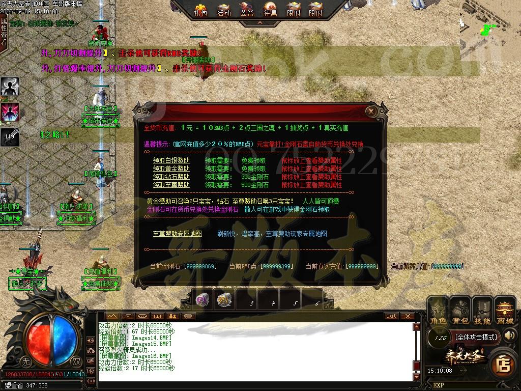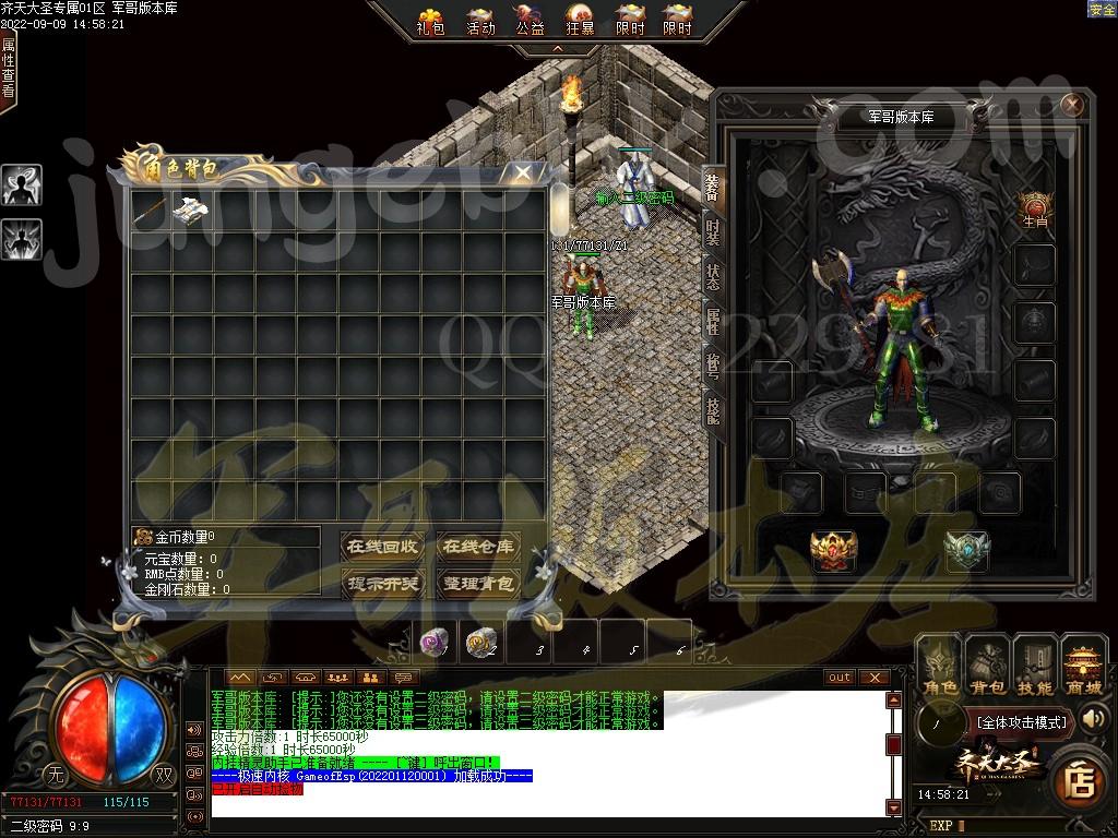 金币充值比例 1 :10   版本为正常开区端有问题联系QQ 616102345  处理