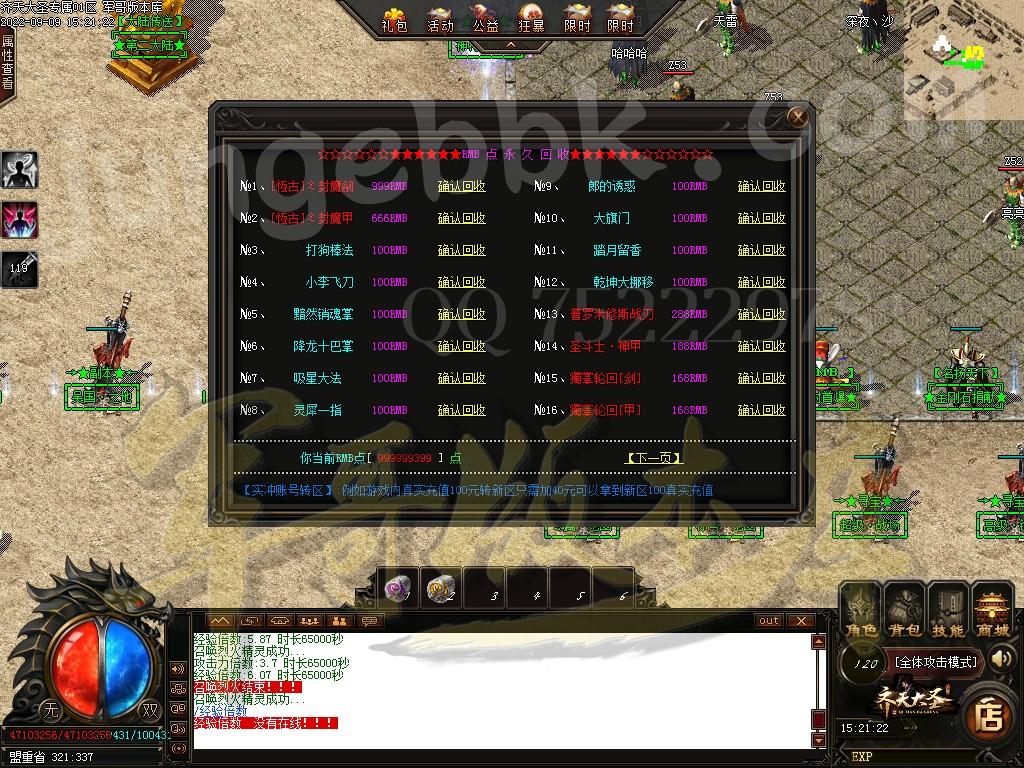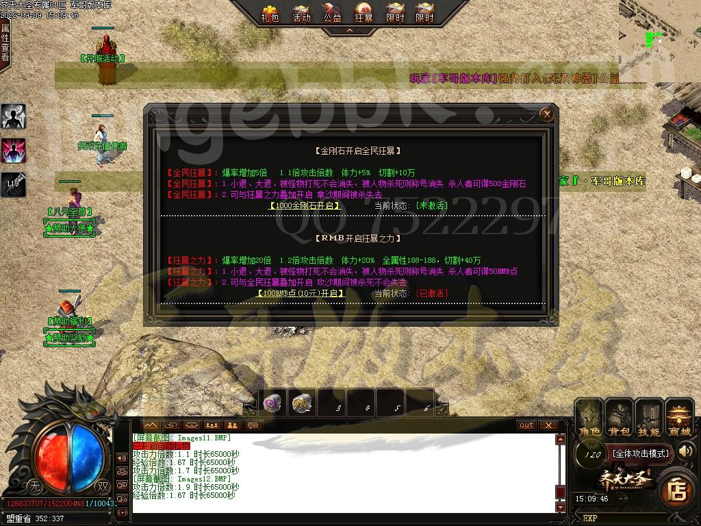 版本介绍:本服装备狂暴 喊上朋友一起打打沙巴克 打打激情 装备绝对狂暴 打不到终极套GM刷给你