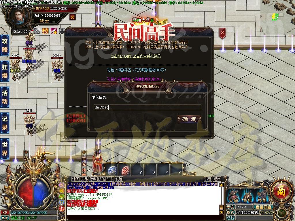 金币充值比例 1 :10   版本为正常开区端有问题联系QQ 616102345  处理