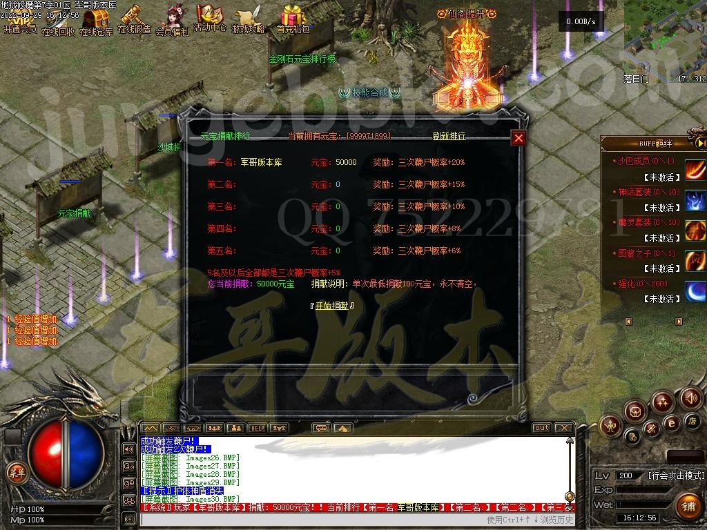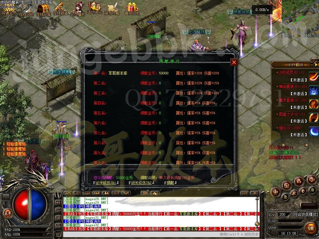 金币充值比例 1 :10   版本为正常开区端有问题联系QQ 616102345  处理