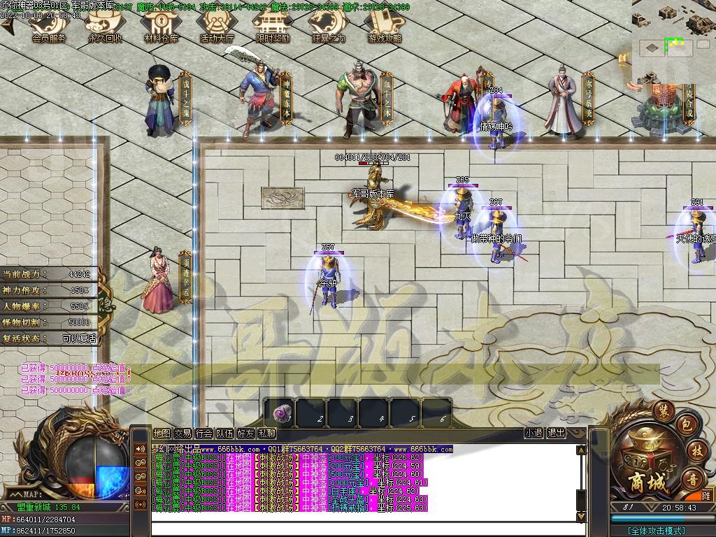 【游戏简介】: ,最好玩,最牛B的神器无线刀,挑战全网所有无限刀专属版本 【装备介绍】:低消费,大激情,无限刀,游戏流畅,免费捡取,免费自动回收,会员免费送 【元宝比例】:充值1:10+1积分 打怪也可获得 【地图介绍】:每个地图都有不同级别的BOSS都可爆终极。人人到终极 【开区模式】:每天开放6个新区。第三天16:00合区攻沙!人气爆棚,激情不倒! 【游戏介绍】:无拖 无暗坑 打造市面上最好玩的神器版本 【公告】:花10分钟 进游戏体验一下 耐心才不会错过一个好服 ============================================================
