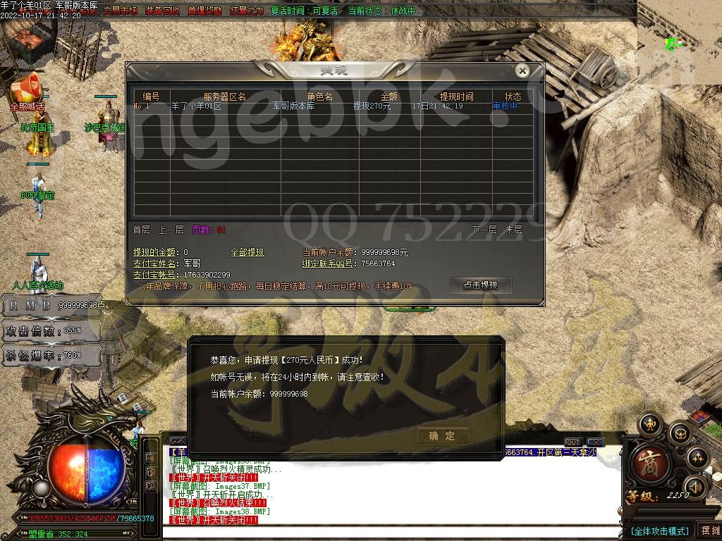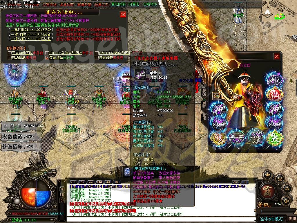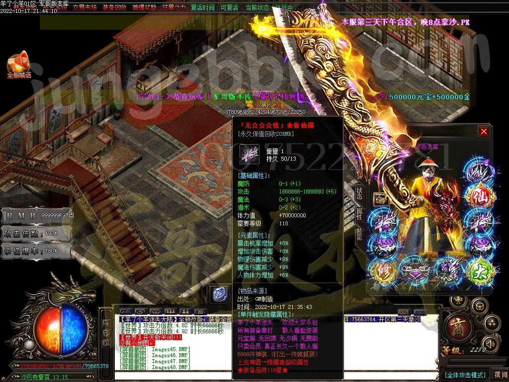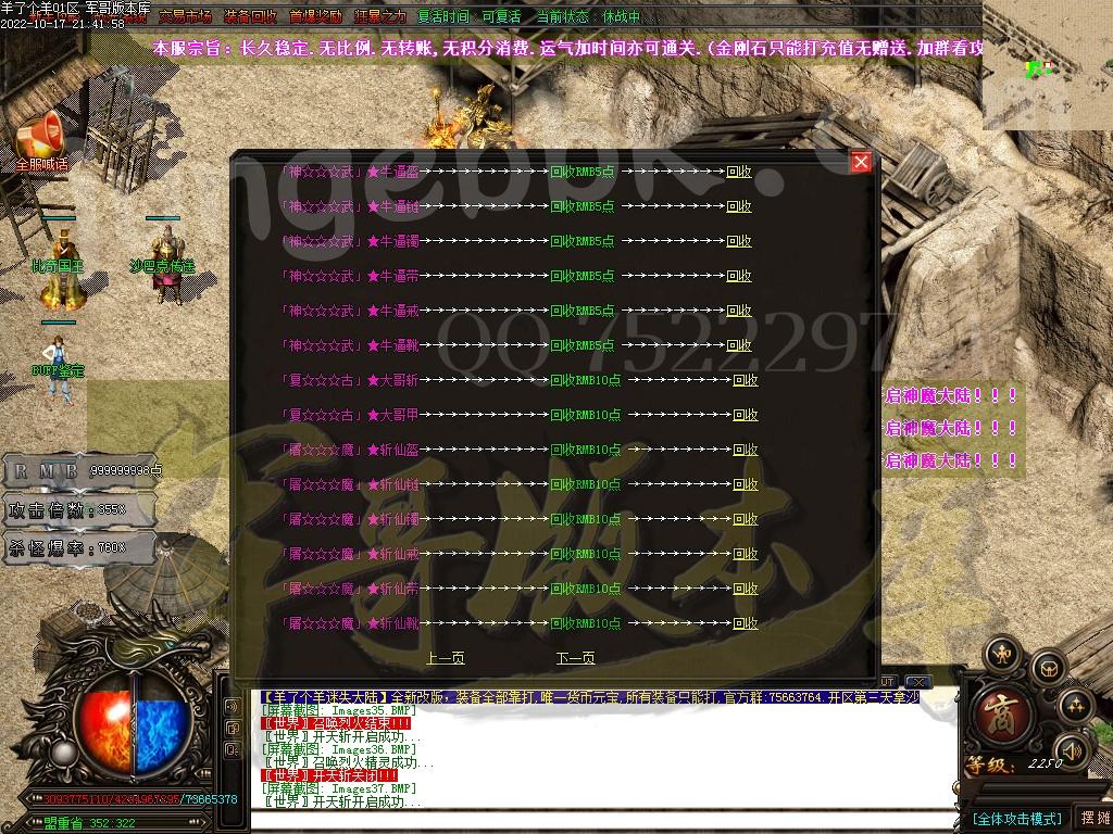 以上只是部分装备介绍.共计8888件特殊神器装备.全部靠打.任何BOSS都有几率爆出.一切看脸.无合成