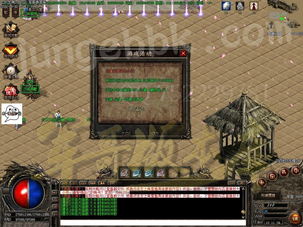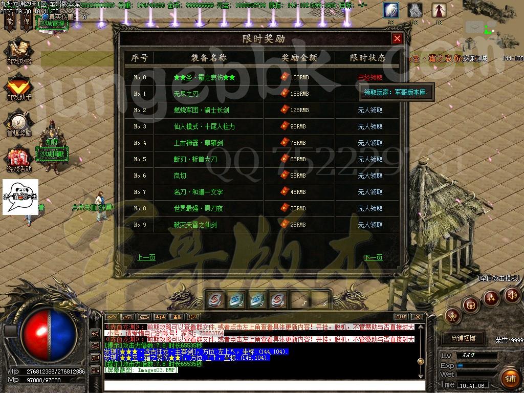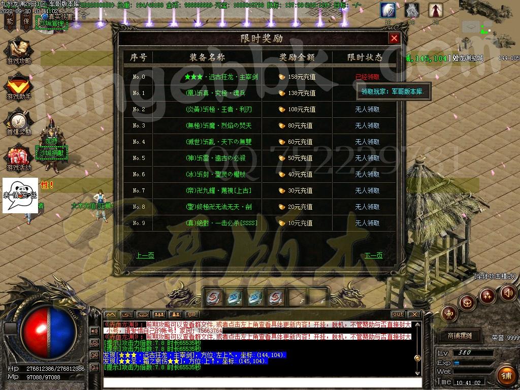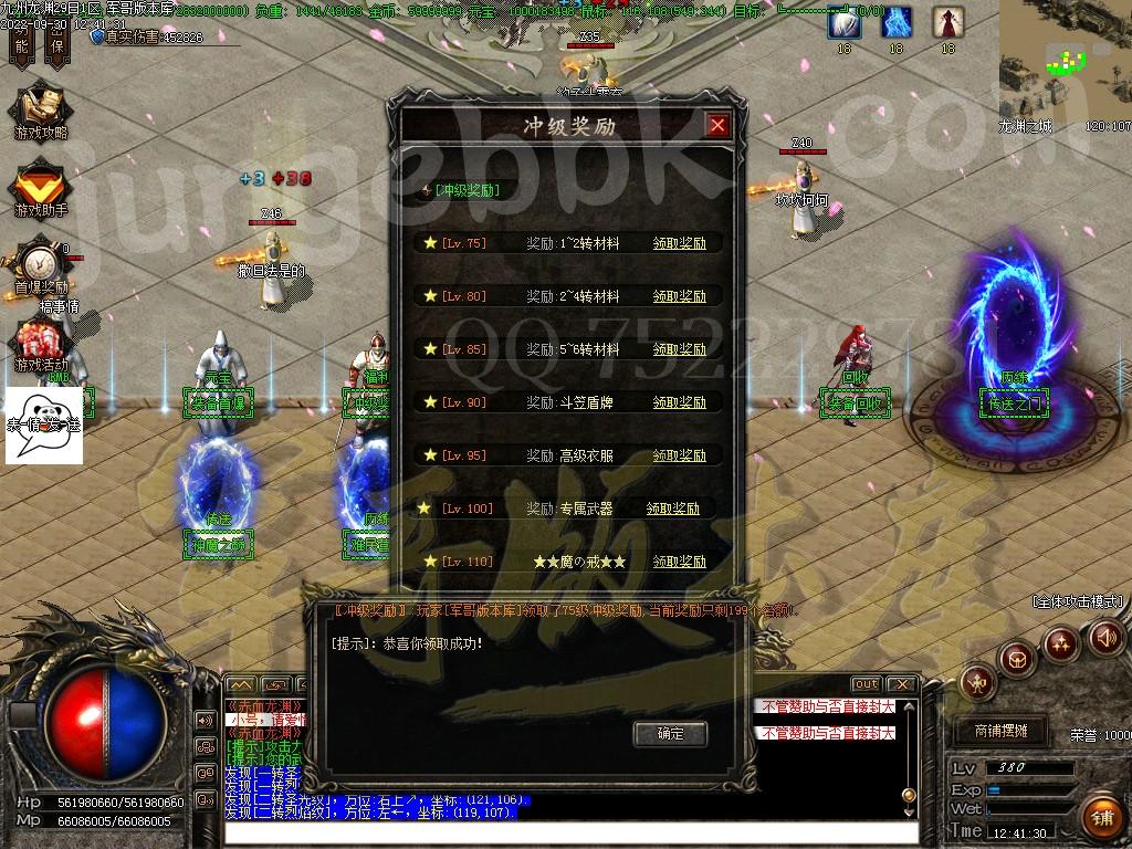 这个时候达到110级,回土城,领取冲级奖励,赠送护盾,面巾,全部带上