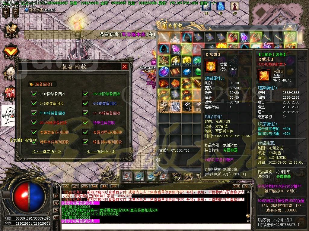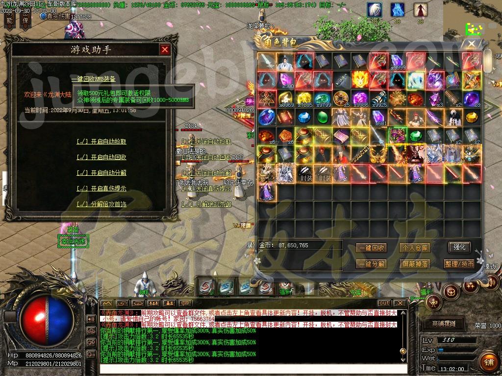 背包一键回收,设置不想要的,然后关闭,点游戏页面左侧的游戏助手,开启自动回收