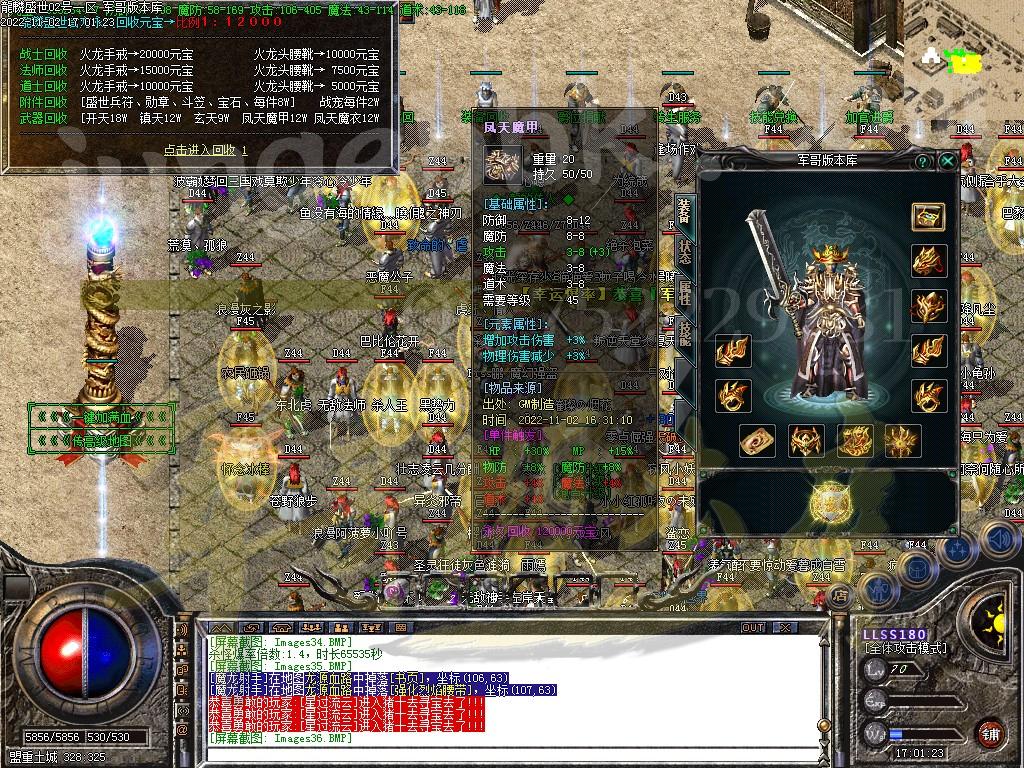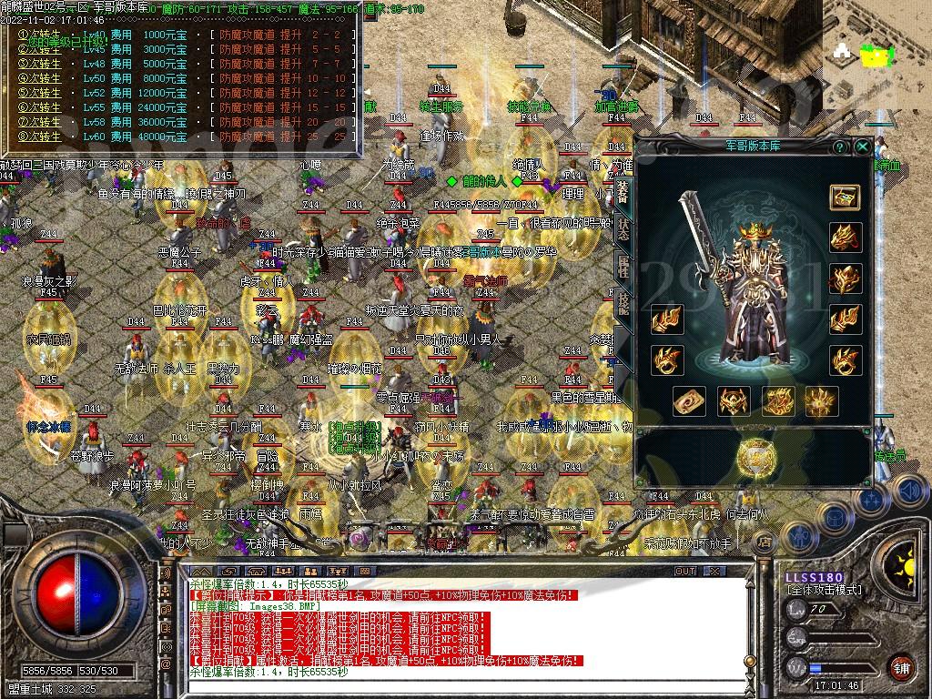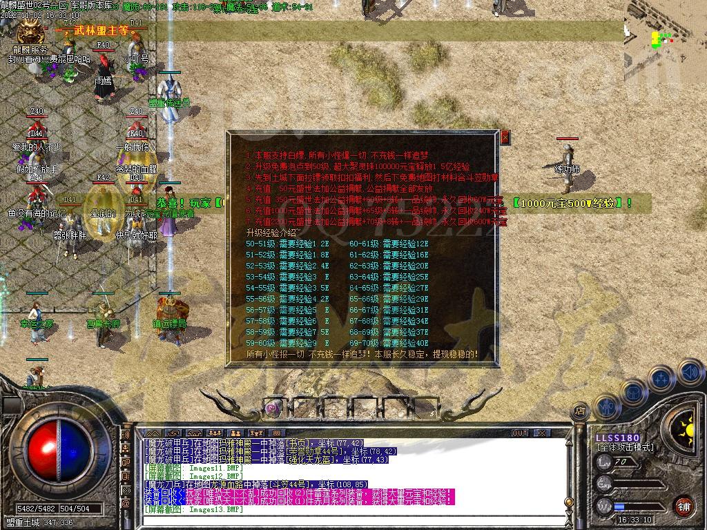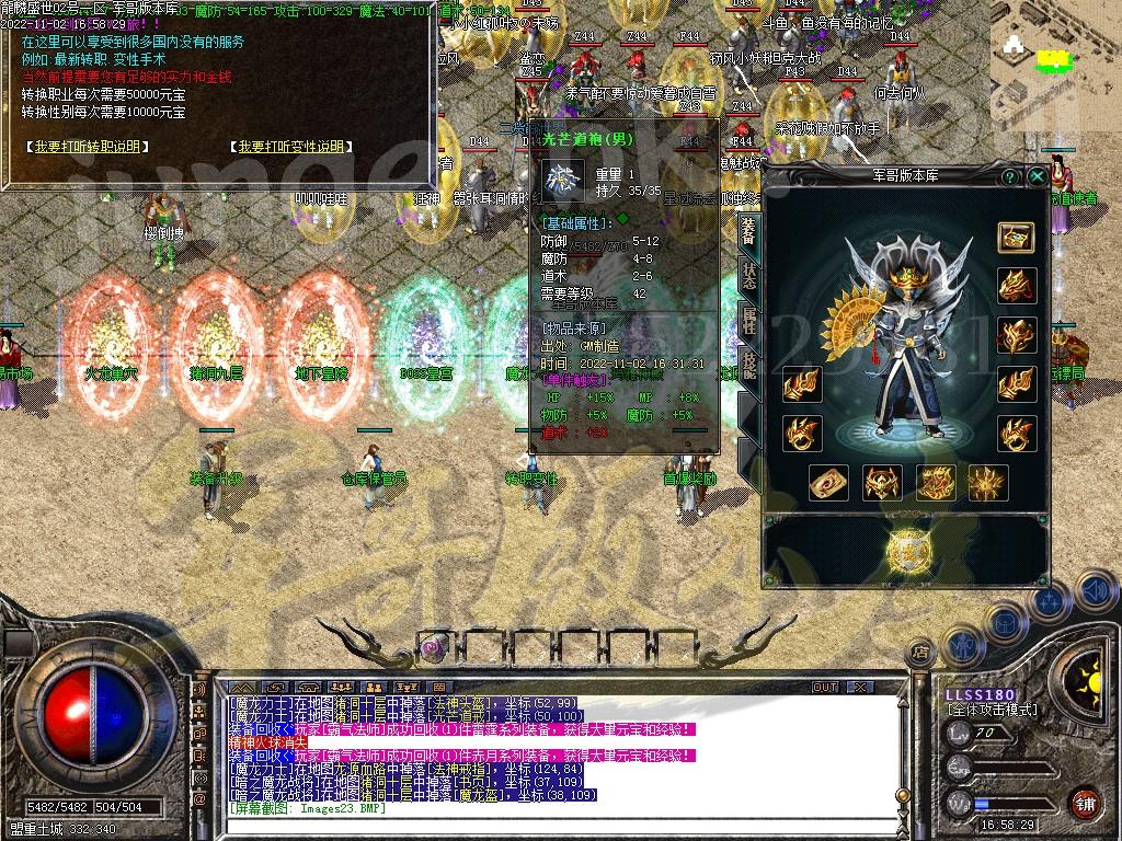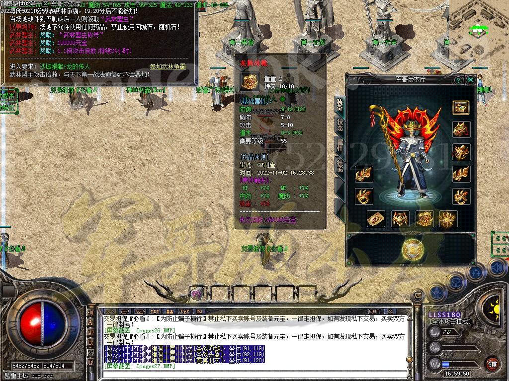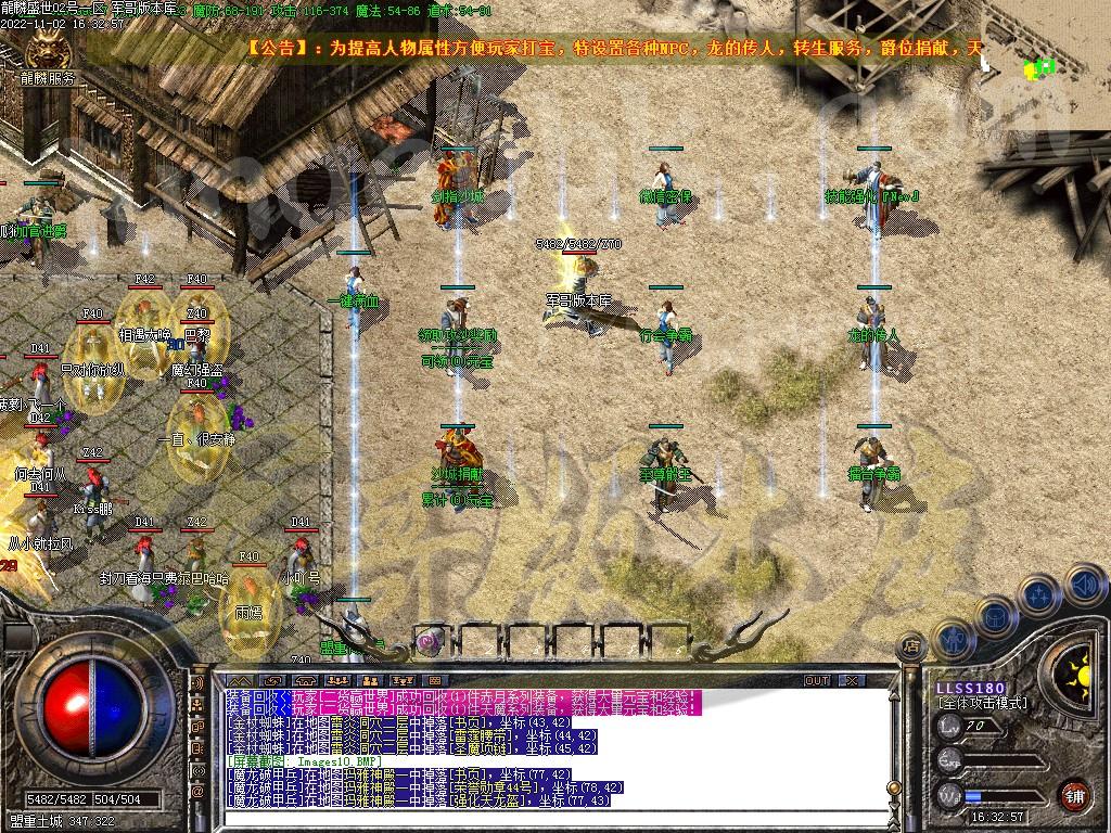 【公告】:为提高人物属性方便玩家打宝,特设置各种NPC,龙的传人,转生服务,爵位捐献,天下第一,武林盟主等。