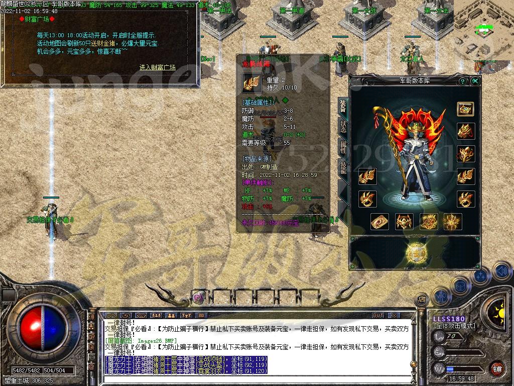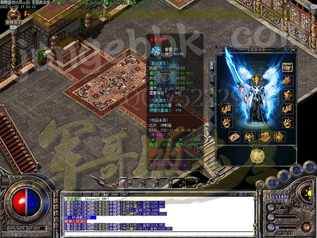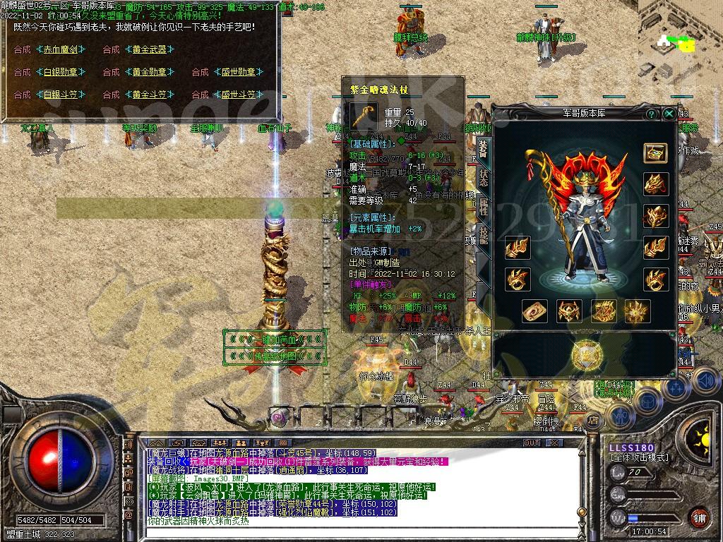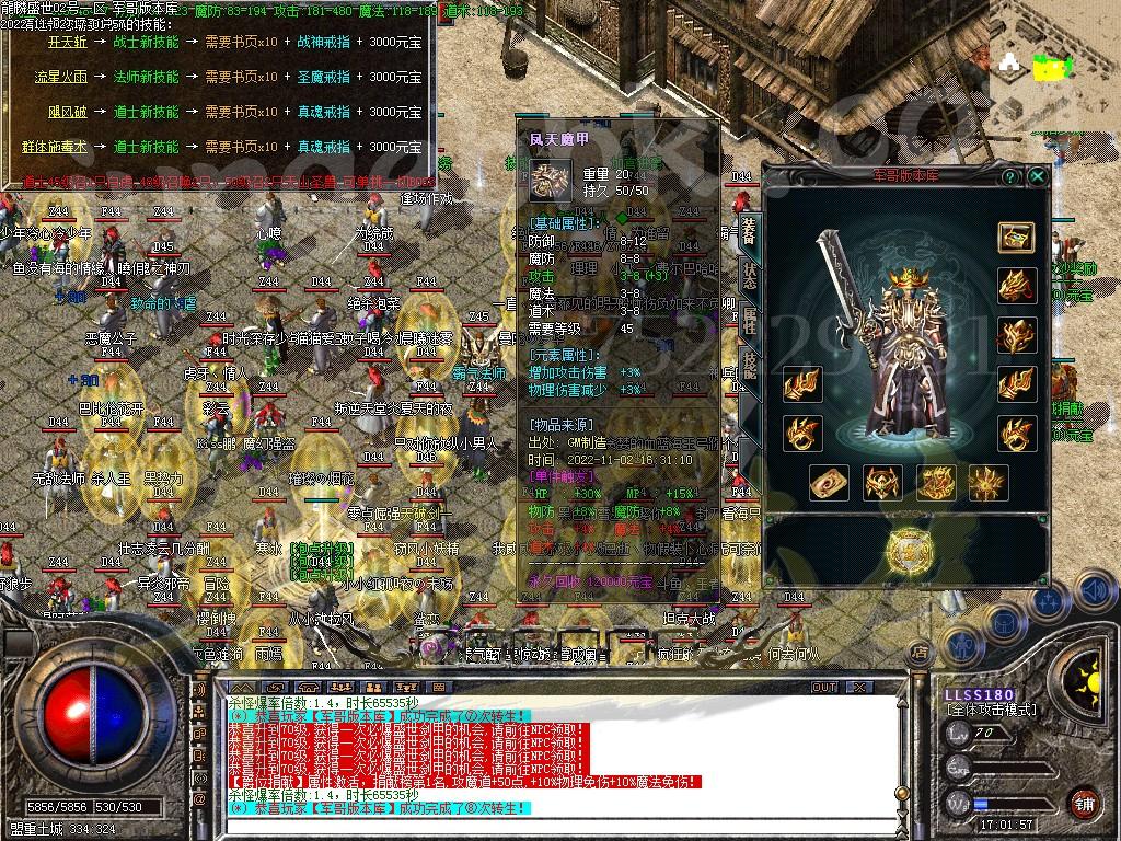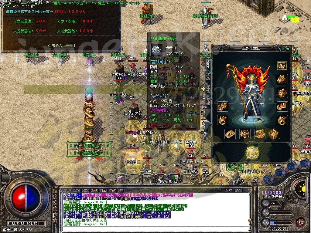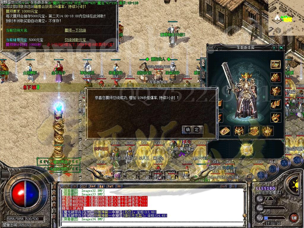【公告】:为提高人物属性方便玩家打宝,特设置各种NPC,龙的传人,转生服务,爵位捐献,天下第一,武林盟主等。