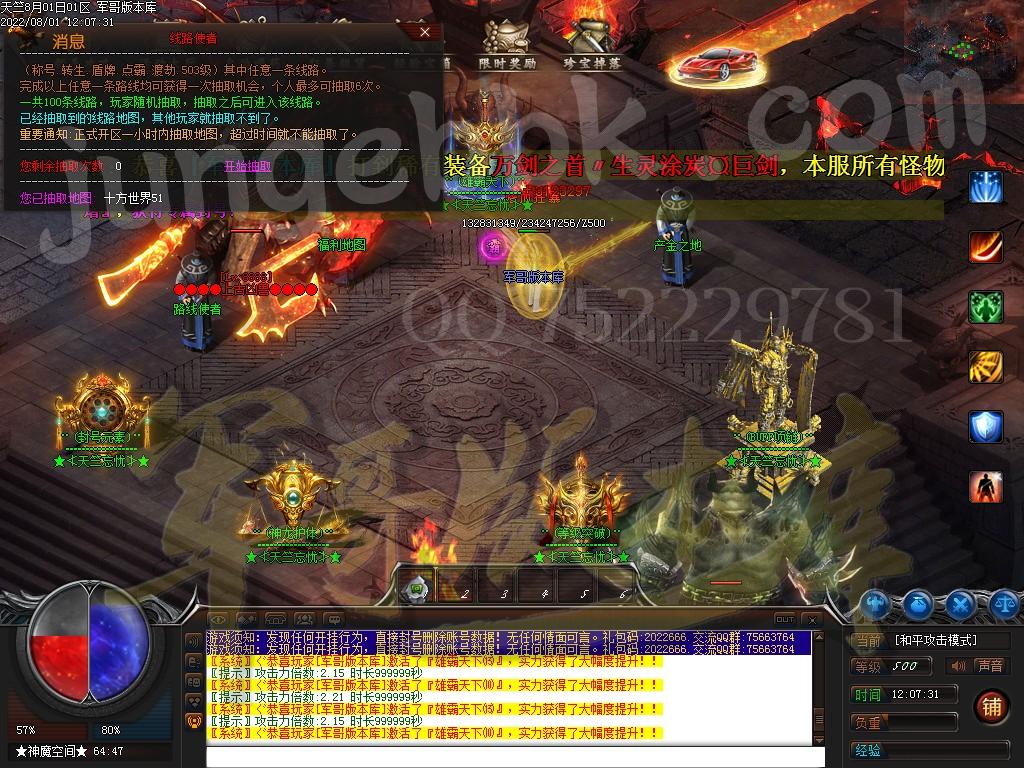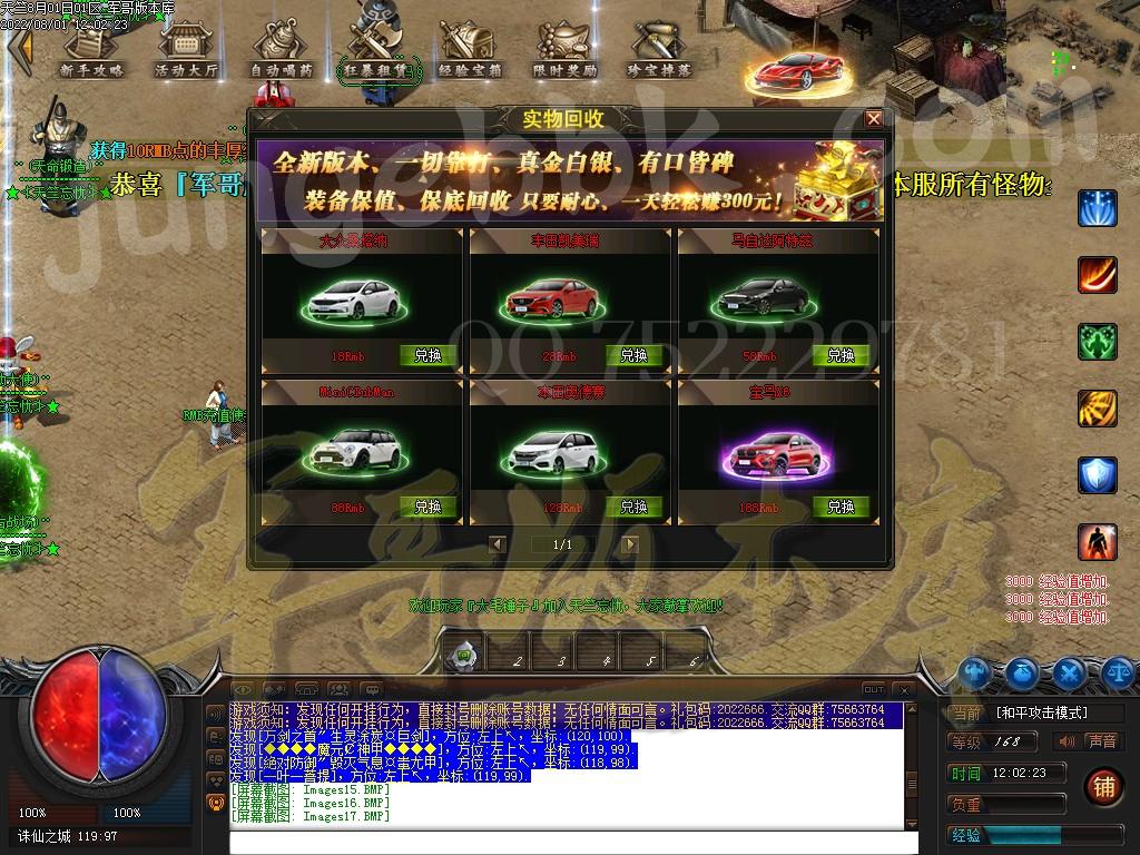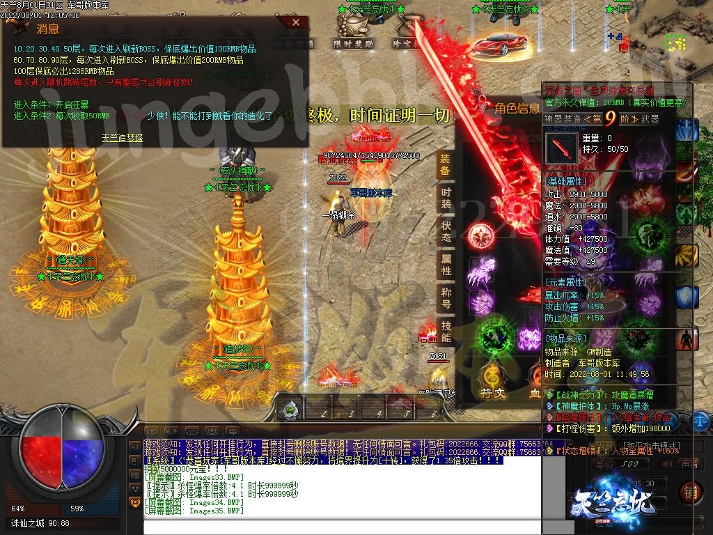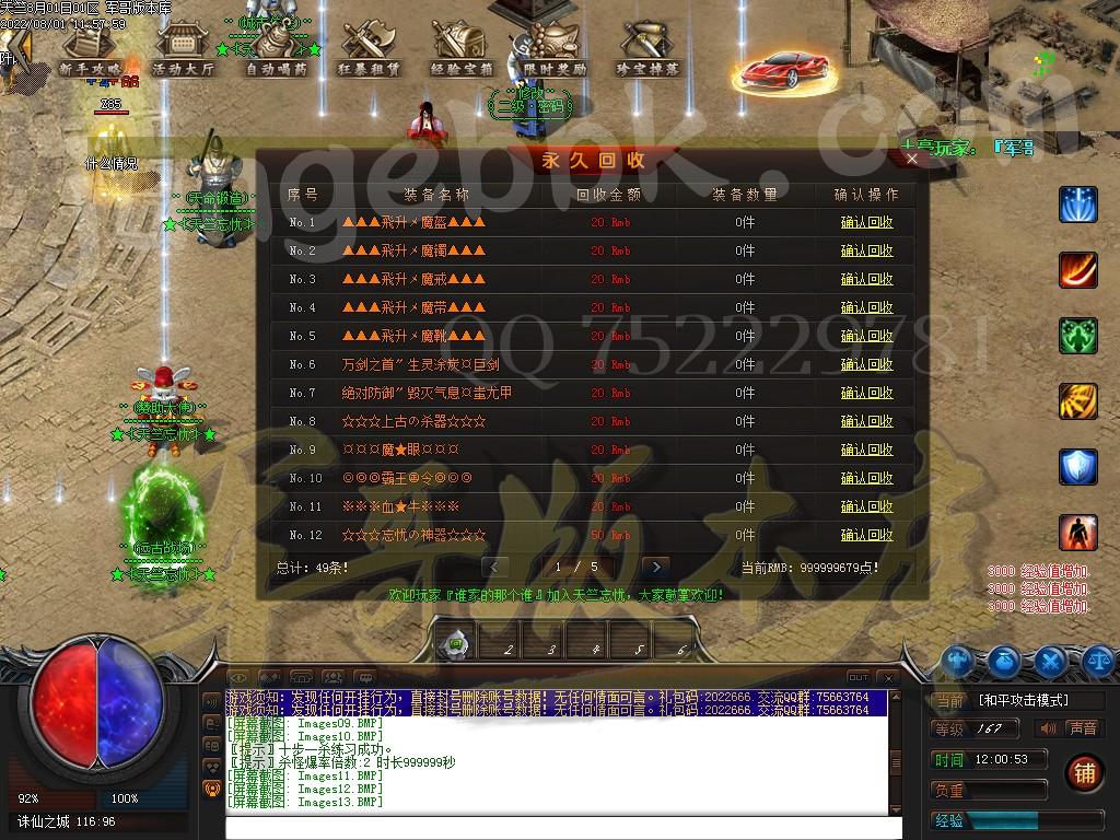 限时奖励:单区千元限时奖励,百件终极装备回收