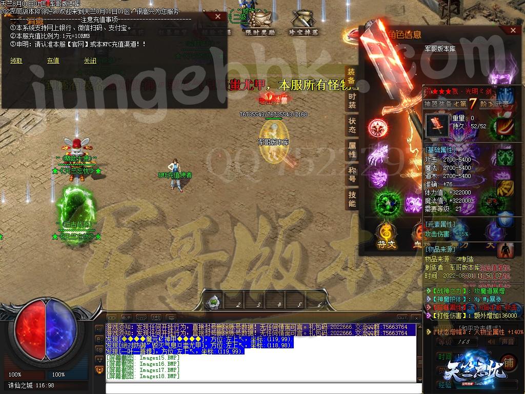 金币充值比例 1 :10   版本为正常开区端有问题联系QQ 616102345  处理