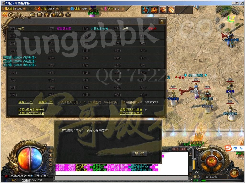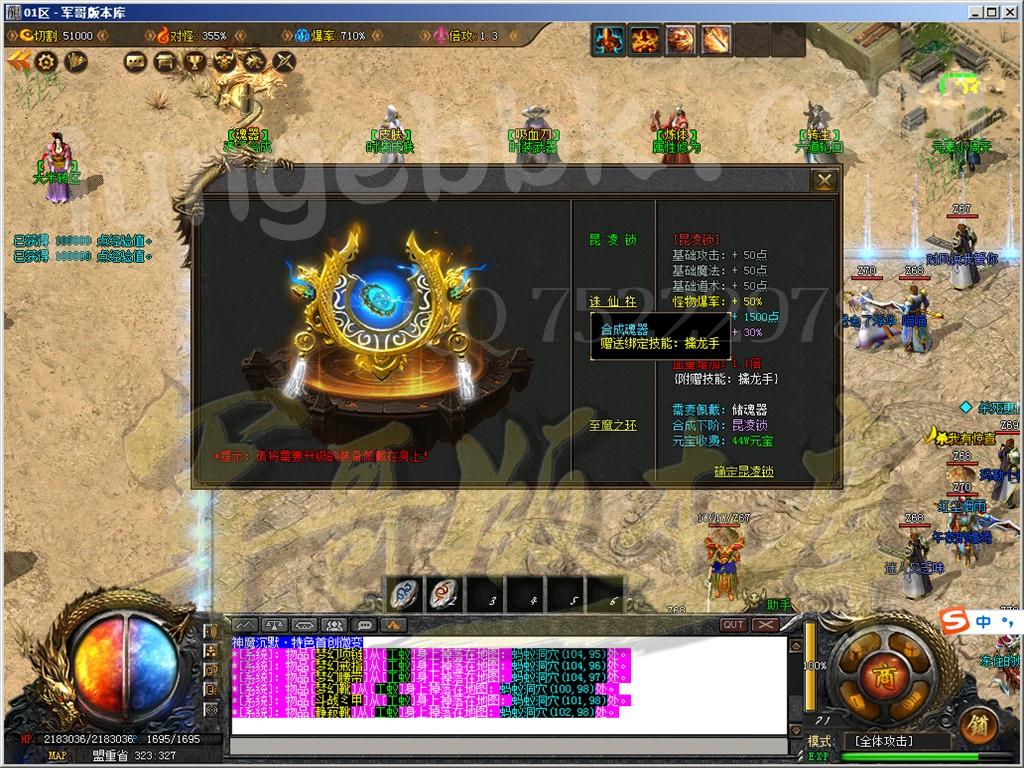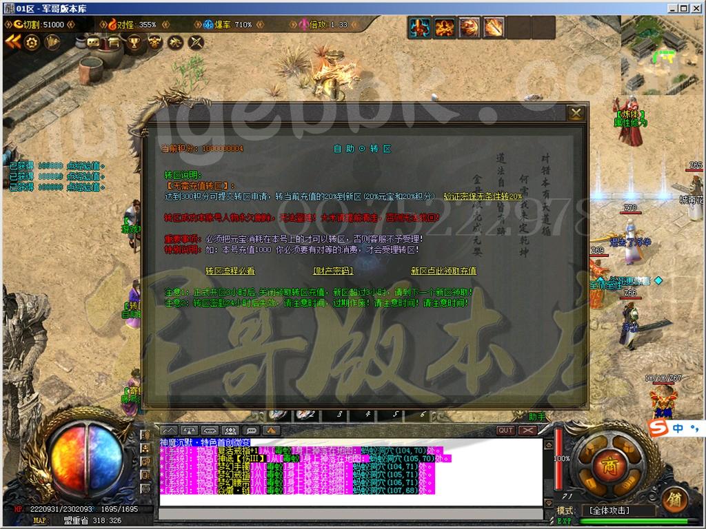 金币充值比例 1 :10   版本为正常开区端有问题联系QQ 616102345  处理
