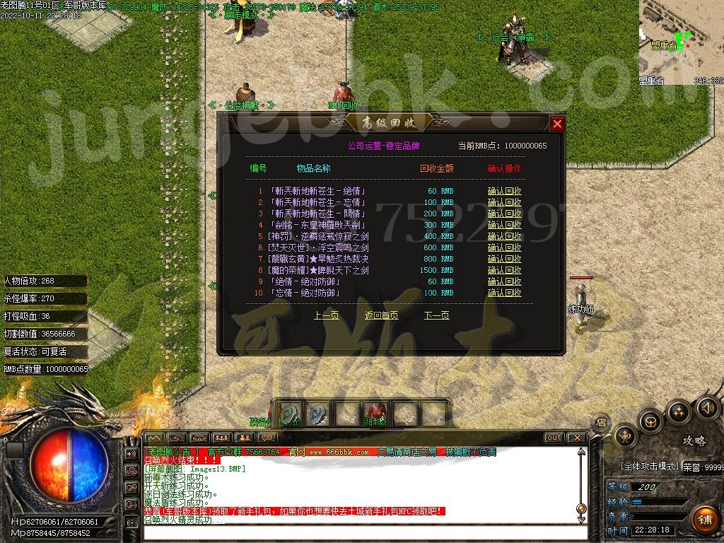 后获得:自动捡物 + 自动回收 + 爆率 + 切割 + 十步一杀(无限麻怪) + 半月弯刀(群怪神技)