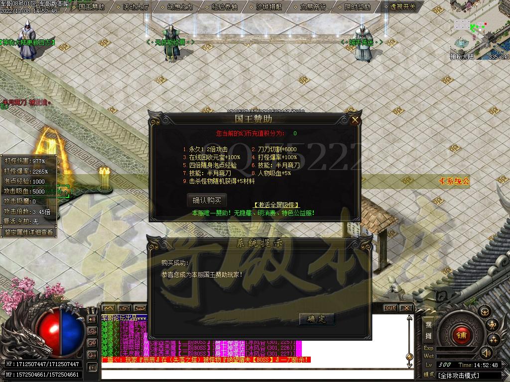 本服承诺:BOSS爆,主打BOOS,转生打宝地图,圣地。