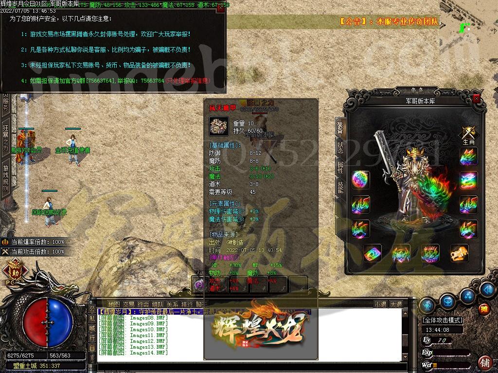 【公告】:本服封杀所有非法外挂,封挂效果绝对给力!一旦遇到开挂者直接封杀,请玩家珍惜自己游戏中劳动果实,诚信游戏。本服除担保客服QQ外,无任何客服QQ,谨防上当受骗!担保请联系本服担保QQ群