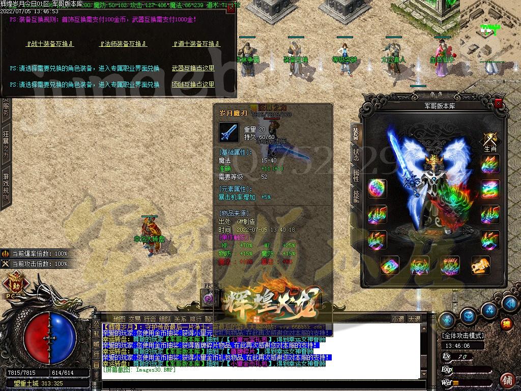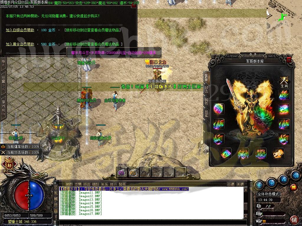金币充值比例 1 :10   版本为正常开区端有问题联系QQ 616102345  处理