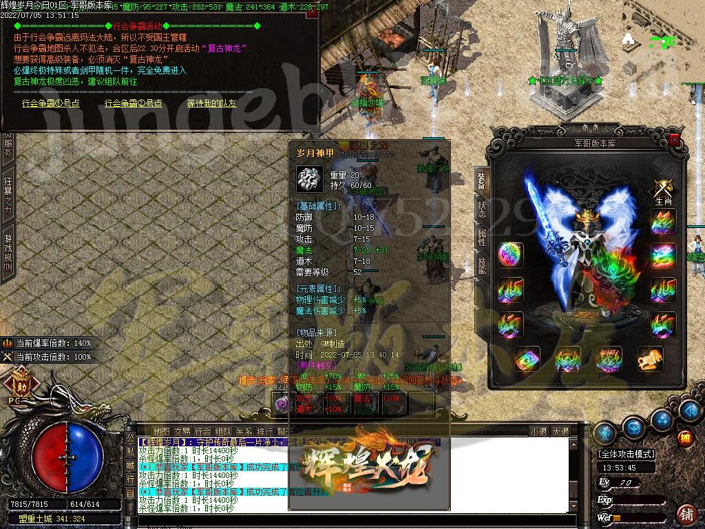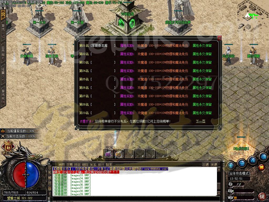【公告】:为提高人物属性方便玩家打宝,特设置各种NPC,洪荒之力,转生服务,爵位捐献,天下第一,武林盟主等。