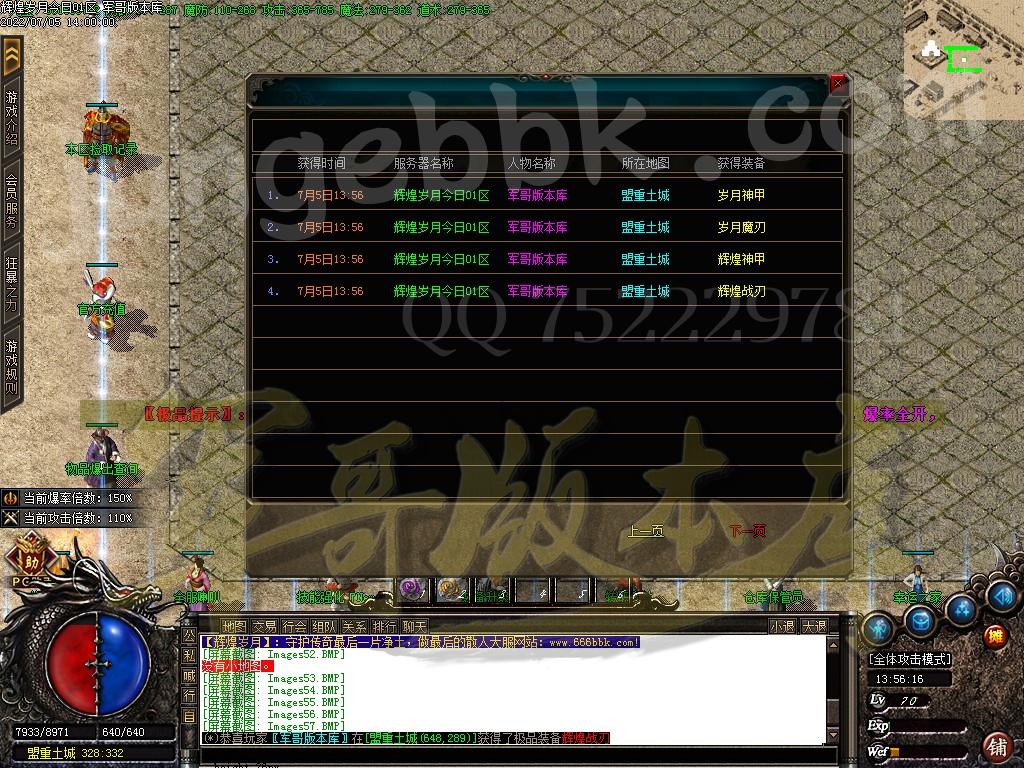 【公告】:本服所有装备都可以爆出,付出时间终极装备不再是梦想,每日下午1-4点客服处提供装备和元宝担保服务。