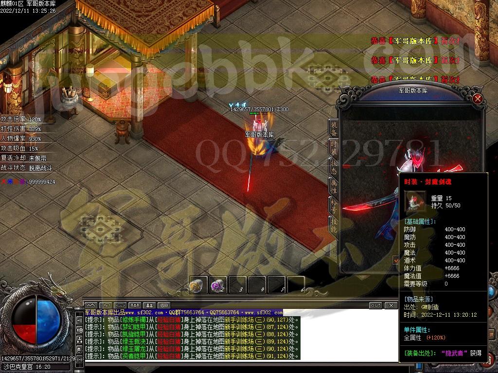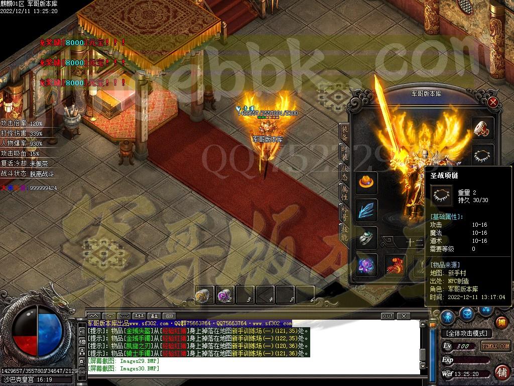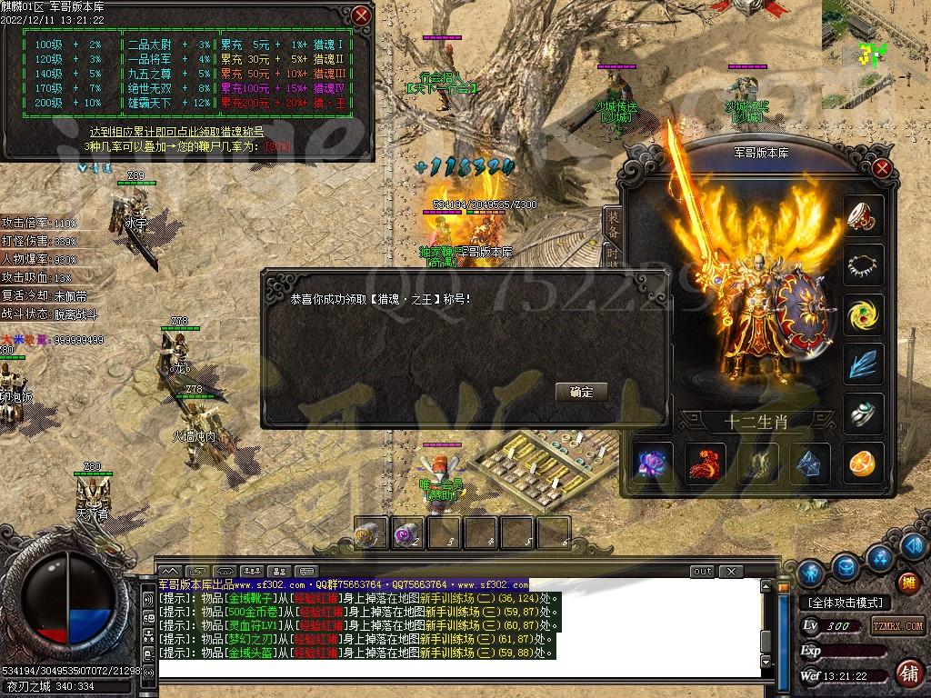 2:220元(测试充值为180元)---元宝充值  (  让神颤抖的男人面巾)    提高人物爆率与打怪伤害