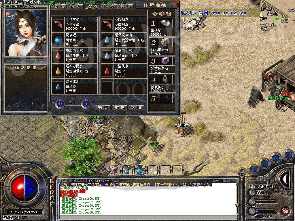 巅峰战神传奇团队宣 1.本服主打复古耐玩路线,以长期为主,快餐绕道! 2.元宝比例:1:1.比列:1:1 3.本F所有装备靠打、等级靠手动升级! 4.电信+网通,千兆双线、采用多机负载技术、外加盾机防护、真正电信和网通都不卡!
