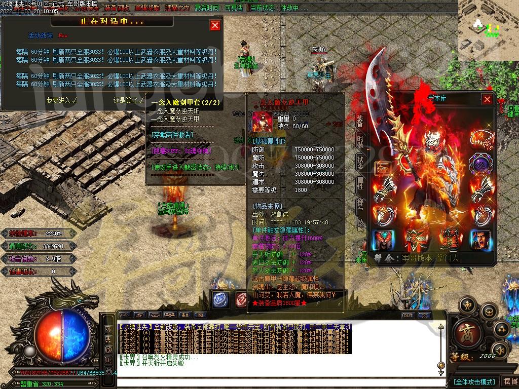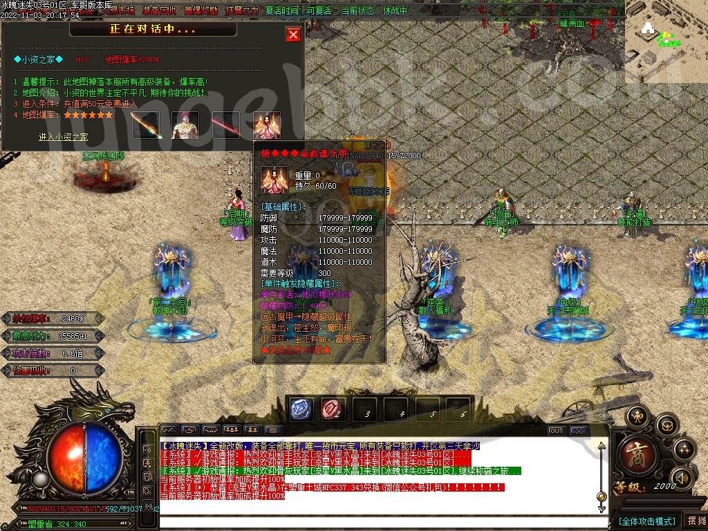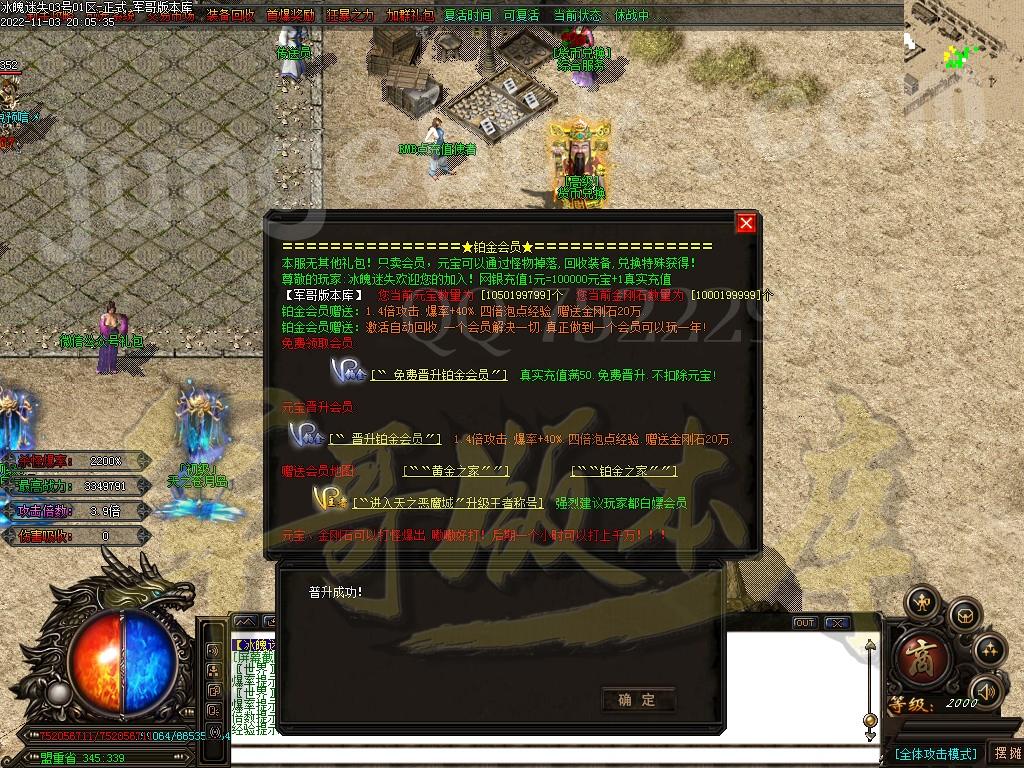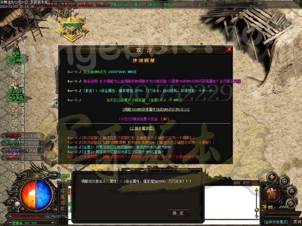 捐献(30)可获得:1.1倍属性 + 200%爆率称号(★公爵★)+ 自动挂机 + 刀刀冰冻 + 十步一杀技能!
