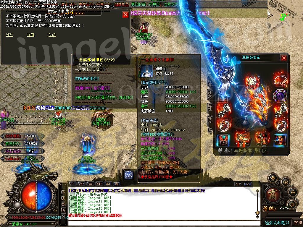 金币充值比例 1 :10   版本为正常开区端有问题联系QQ 616102345  处理