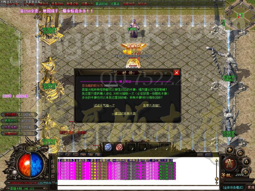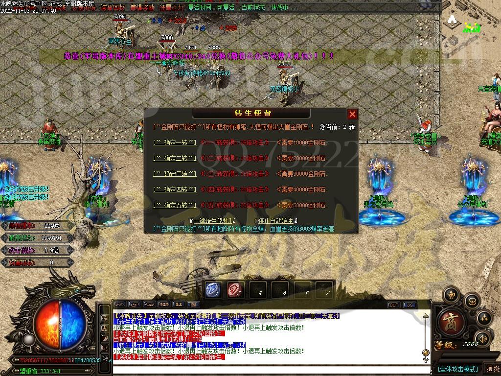 2、后期打高级装备回收混沌神石。5个混沌神石=1点 永久回收(高级货币兑换NPC回收,土城346.336)