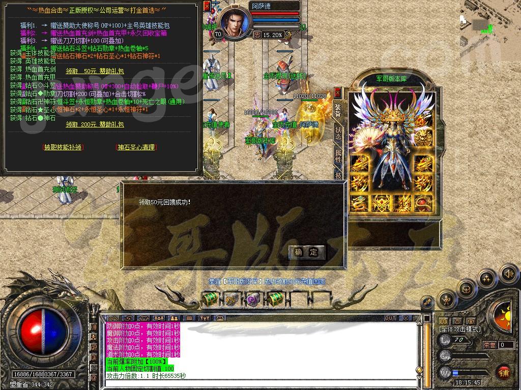 金币充值比例 1 :10   版本为正常开区端有问题联系QQ 616102345  处理