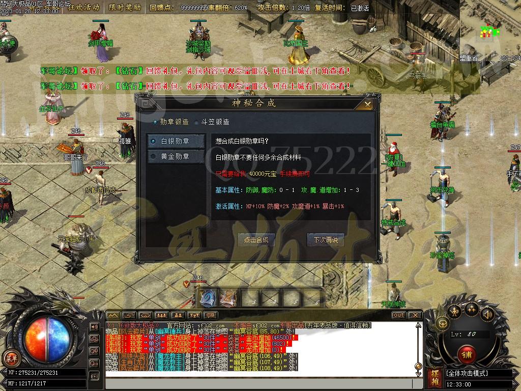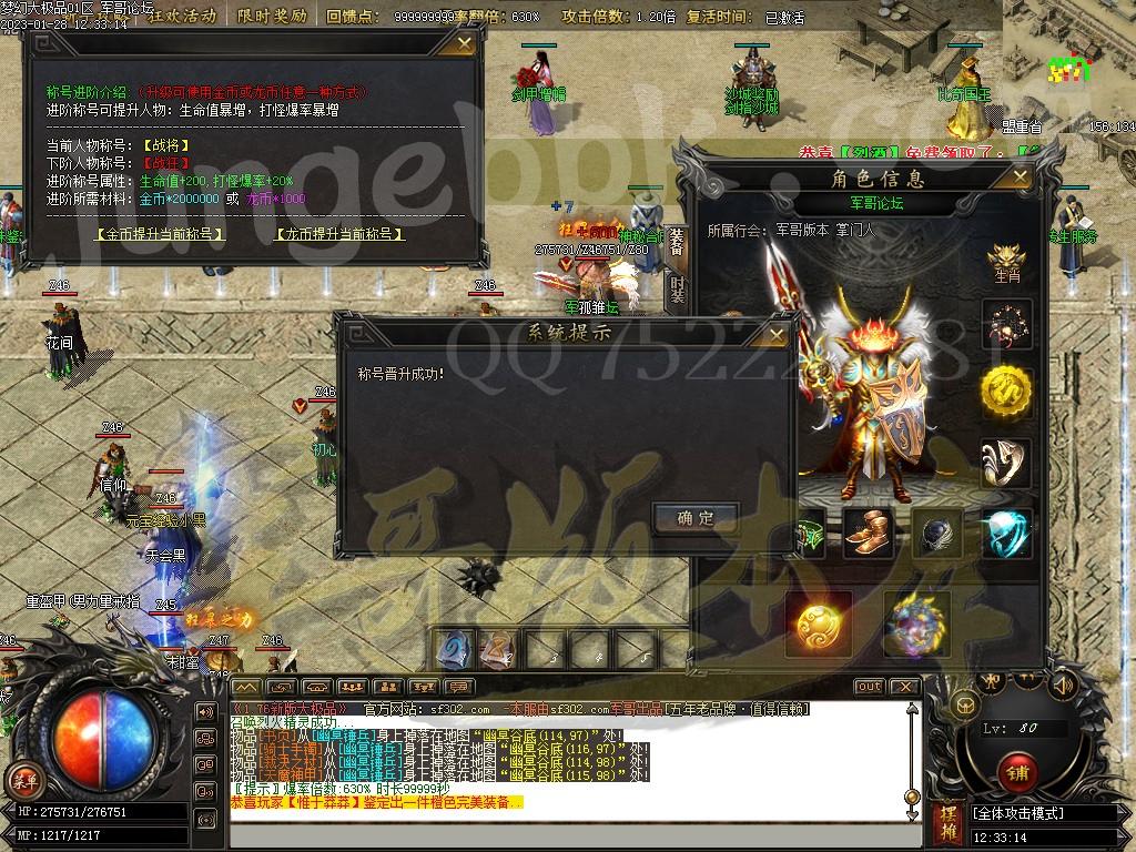 【独家复古】:大极品,大元素,装备好打,区区激情合区稳定60+以上!