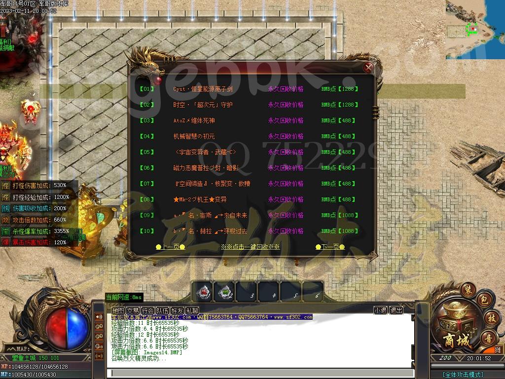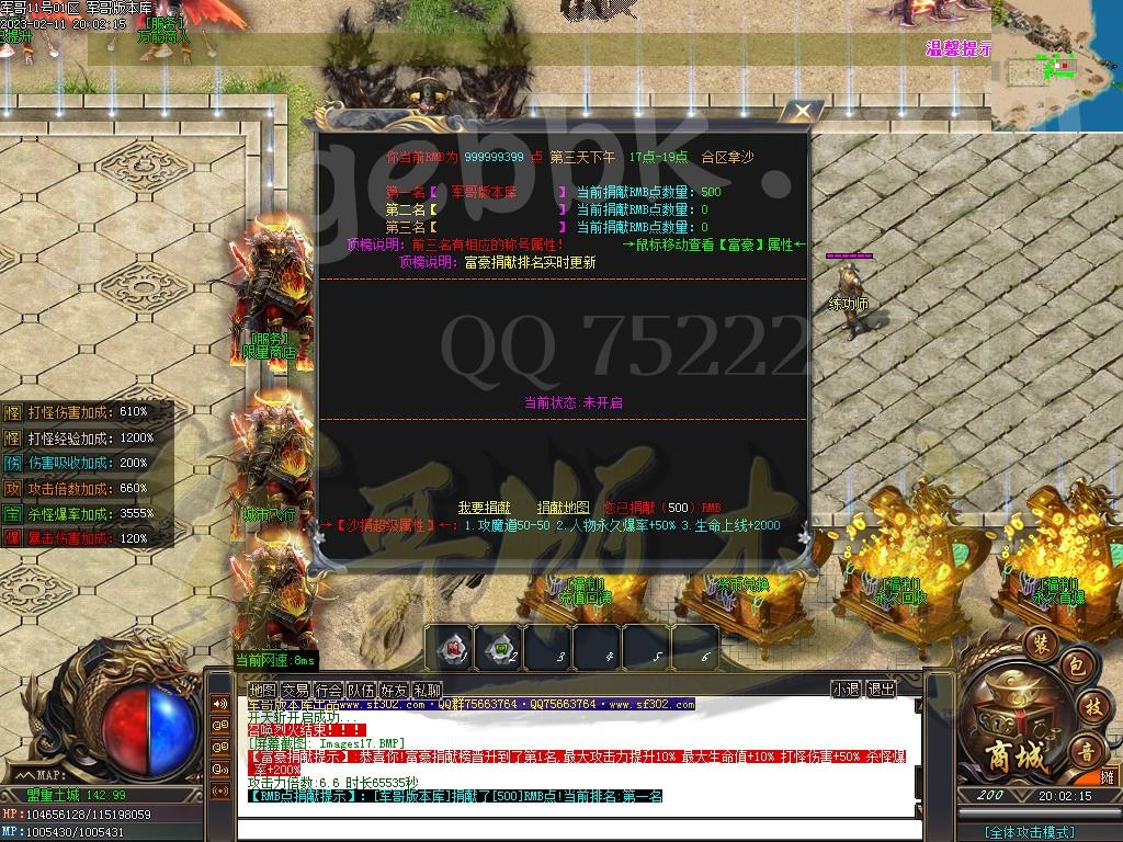 充值回馈:累计充值500元:爆率额外+50%打怪切割+20%