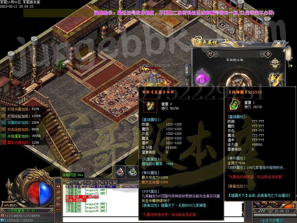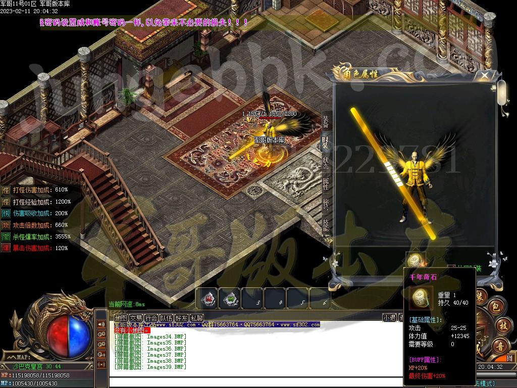 版本内包含2个压缩包,分别是WXF免费插件、esp收费插件的版本,开区使用什么插件拿对应插件的版本即可使用! 开启狂暴之力将会获得以下属性: 1.游戏小退,大退,被怪打死的情况下,都不会消失.2.人物头顶会有显示图标★杀我有惊喜★