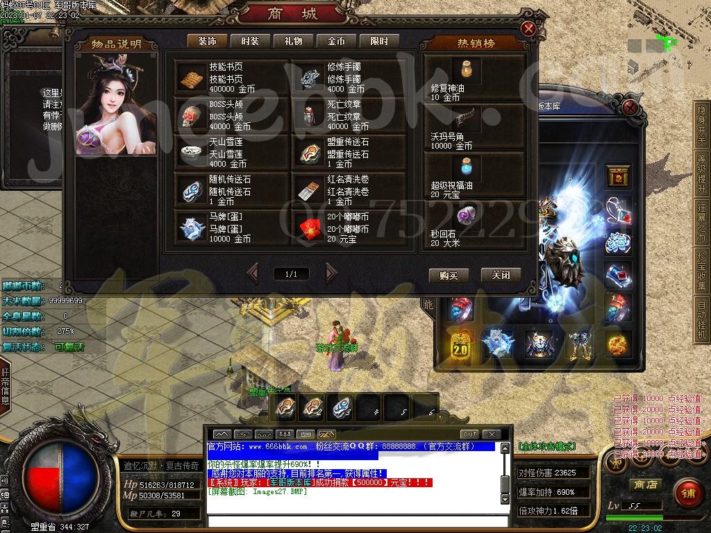 金币充值比例 1 :10   版本为正常开区端有问题联系QQ 616102345  处理