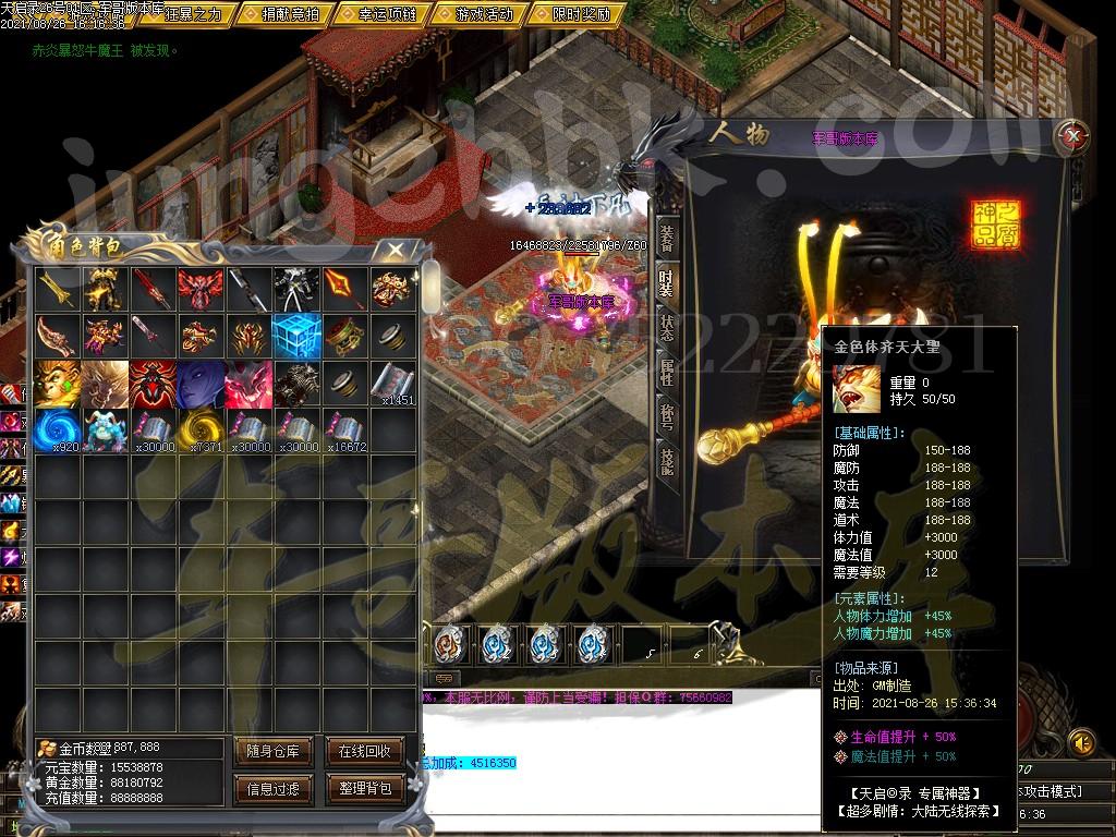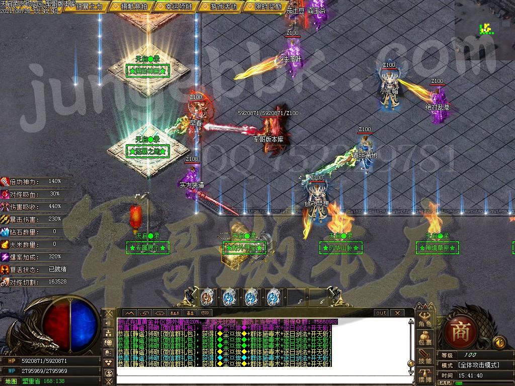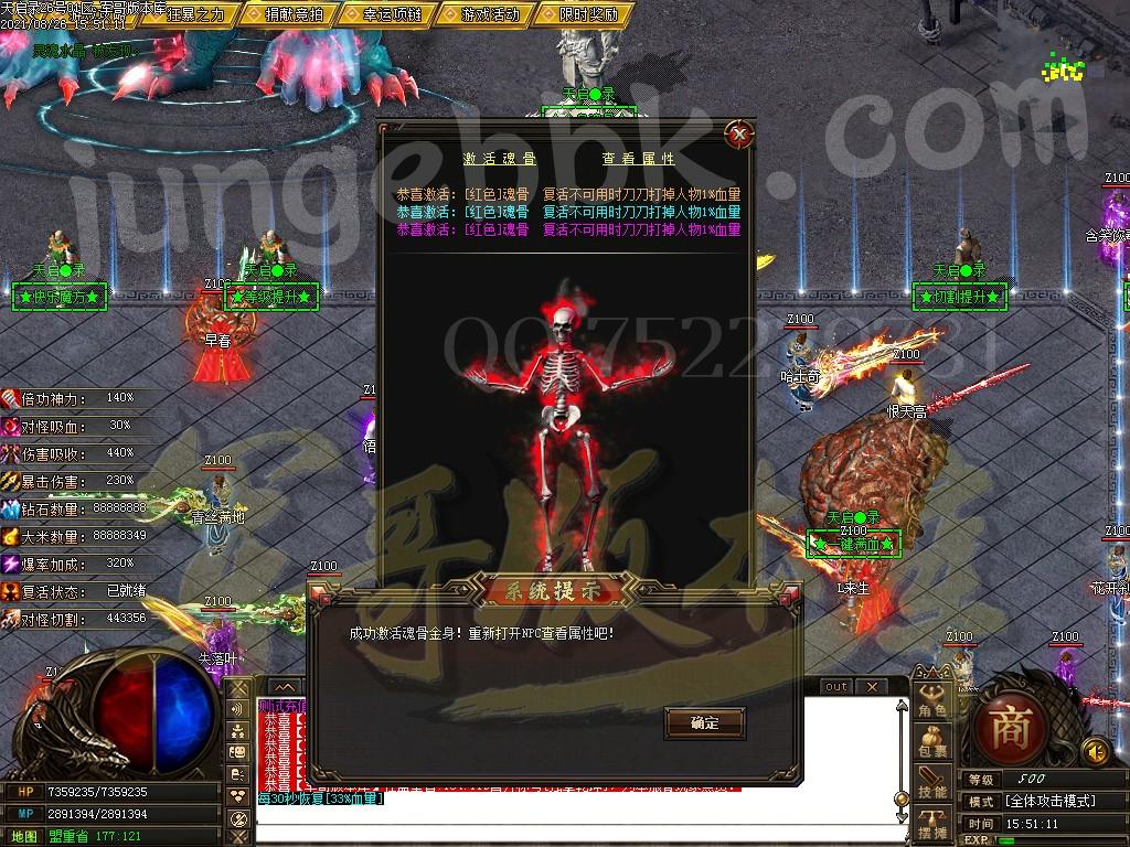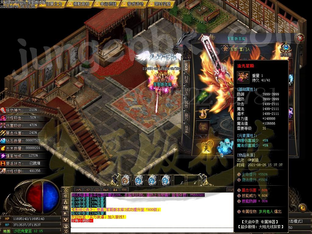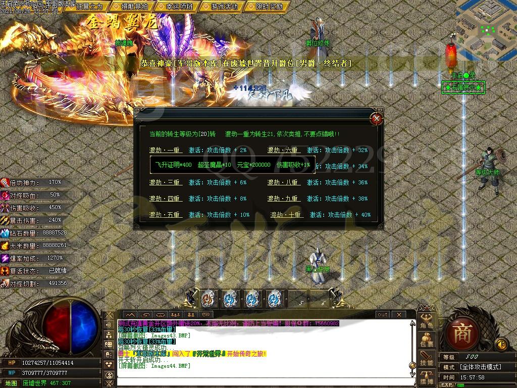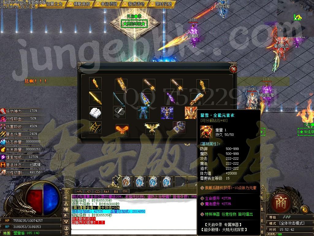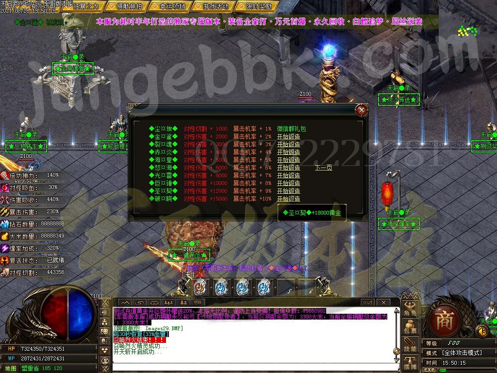另外444级怪开始都有几率出所有神器,技能,时装衣服,神器剑甲等等 花钱只是起步快,所有怪物必爆黄金,称号卷轴爆率也是极高,