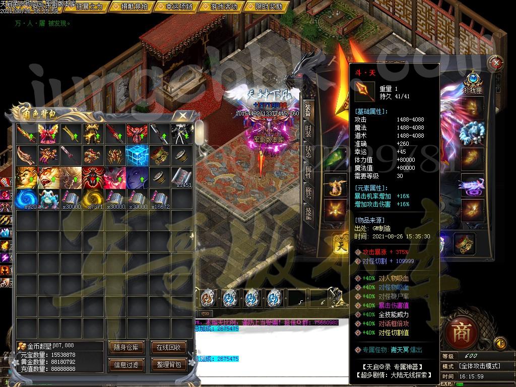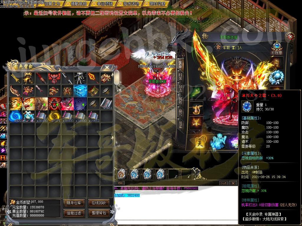 [GOM引擎] 18-910独家天启录神龙传专属剧情单职业客户端-带假人-ESP插件-光柱-自动回收-沙城捐献