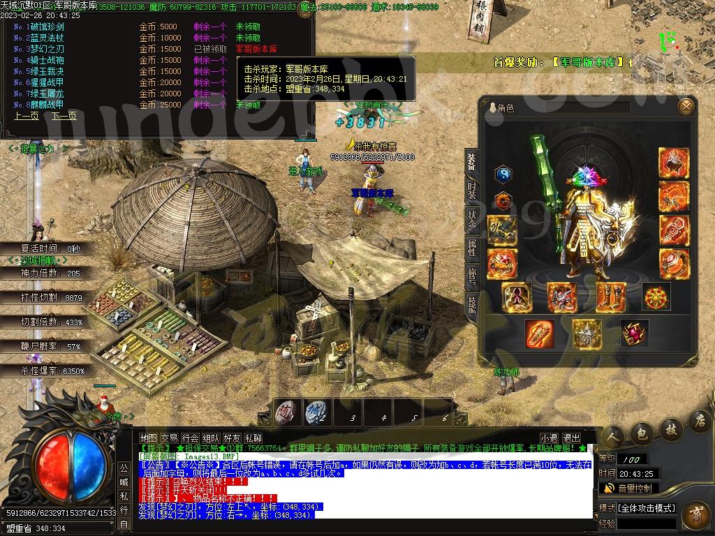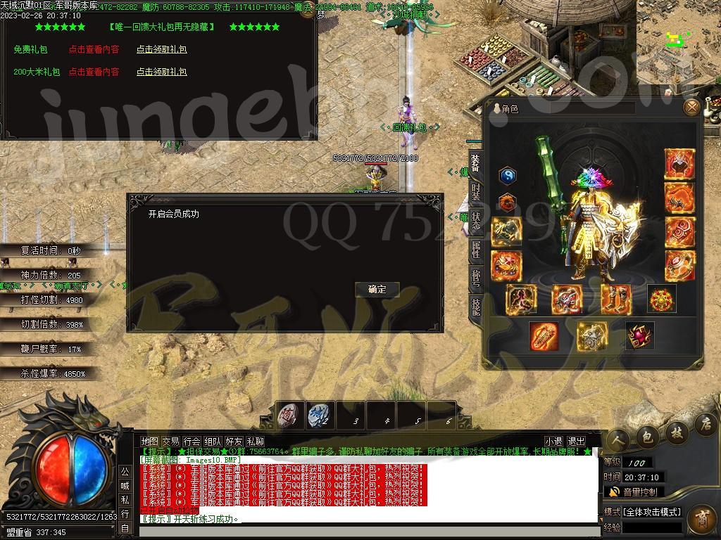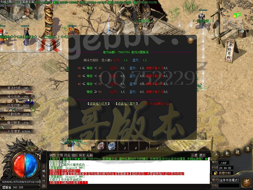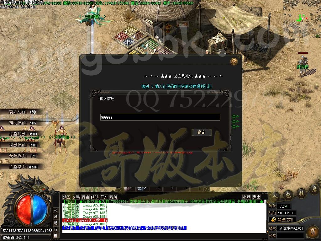 金币充值比例 1 :10   版本为正常开区端有问题联系QQ 616102345  处理