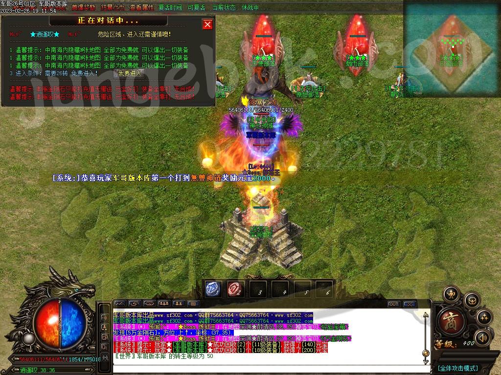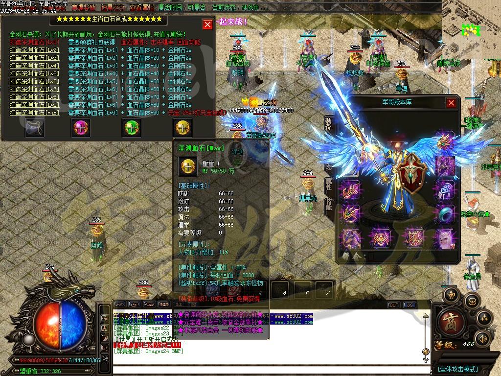 版本内包含2个压缩包,分别是WXF免费插件、esp收费插件的版本,开区使用什么插件拿对应插件的版本即可使用! 1深渊大陆:轻中变单职业,,只卖会员.一个会员玩通关.自动拾取 自动回收! 本服无赞助 无回馈 无切割 无鞭尸 无土豪榜 无充值地图。 2本服充值只有元宝.没有充值点.充值积分类货币.打到元宝就相当于充值了。本服剑甲首饰无任何合成.全部靠打.不控制爆率.(53套装备).>>(800件倍攻神器) 3金刚石只能打.四格.时装盾牌.刚石免费提升到终极.不需要花您一分钱。首爆奖励非常丰富.3000多件首爆奖励.全部打完相当于5000的网银充值。 4本服所有地图都有终极boss.散人逆袭看脸.,(本服所有地图都有隐藏地图)本服所有Boss都会爆出“景天宝箱”免钥匙.免费开.可以开出一切装备。 5本服上线赠送召唤宠物技能.根据人物等级提升等级(后期宠物3*3范围攻击),100 150 200 220 240 260 280 300 350宠物(280级的宠物开始范围群攻) 6本服项链幸运值能打出+幸运卷轴.充值无赠送.打出后双击使用(增加倍功)此版本最终解释权归所有。 7本服装备属性非常牛逼.打件神器你会发现你的伤害成吨提升(鄙视垃圾切割服)本服宗旨“花小钱.大激情”“花小钱.打首爆”“打件神器追着老板揍”。 8本服装备属性非常牛逼.打件神器你会发现你的伤害成吨提升(鄙视垃圾切割服)本服宗旨“花小钱.大激情”“花小钱.打首爆”“打件神器追着老板揍”。 ============================================================