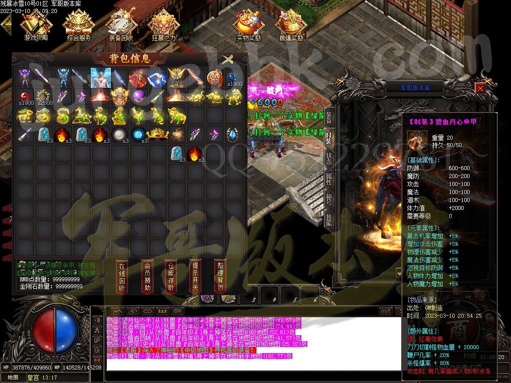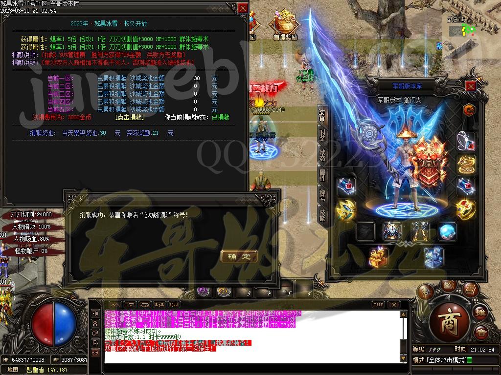 满礼包+捐献+狂暴+时装+特殊三件套+称号【全身切割翻倍】